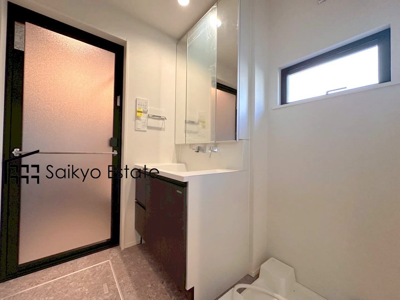 三面鏡付きの洗面化粧台を完備。収納スペースも十分ございますので、ドライヤーなどすっきりと片付きます♪
