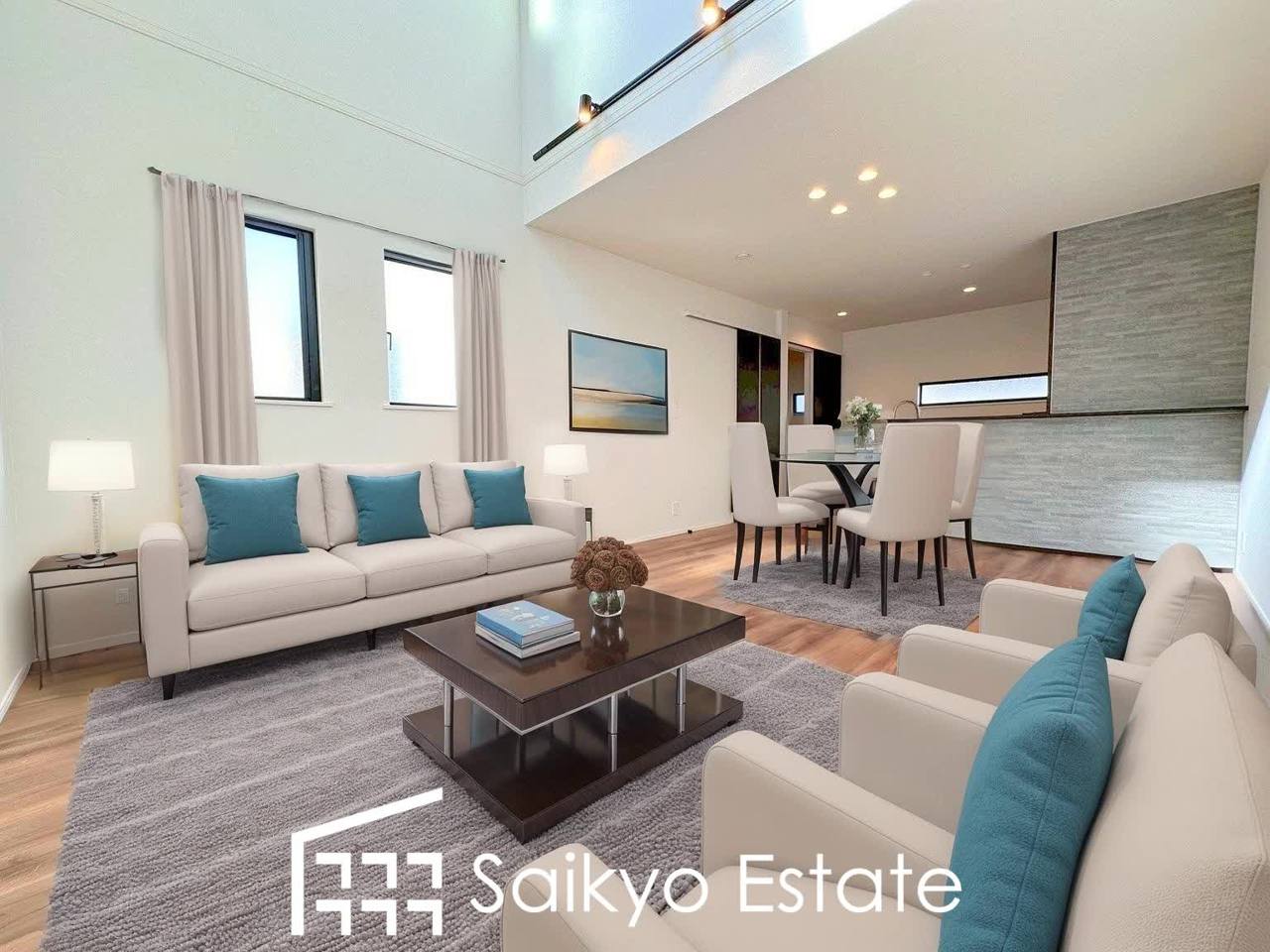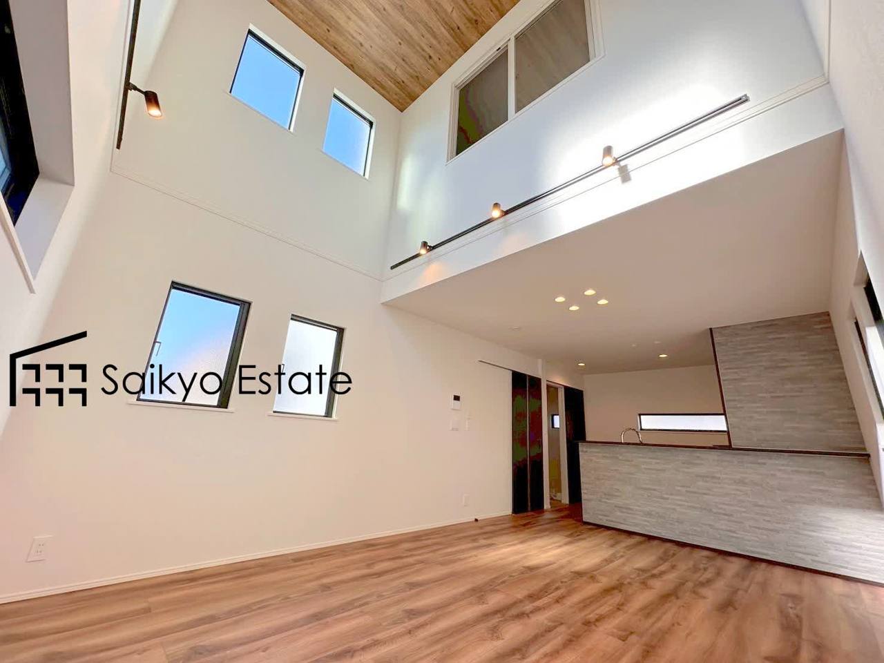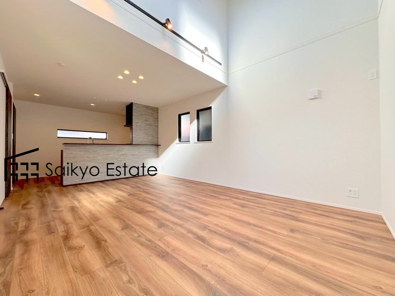 上部は吹き抜けのため開放感ございます♪窓も多く、採光を取り込める面積が大きい事で明るく気持ちの良い空間となっております♪