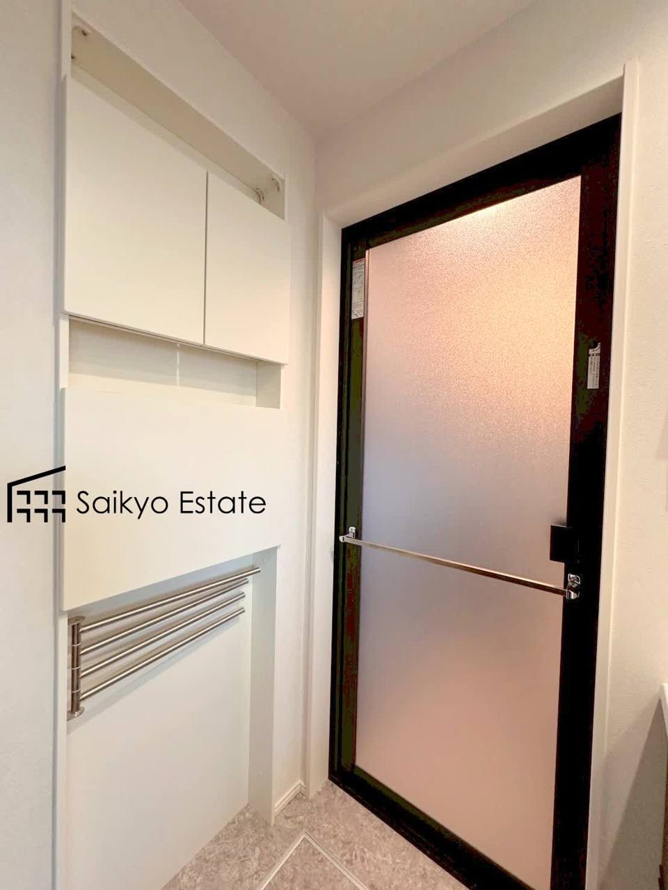 洗面室には埋め込み型の収納がございます。浴室や洗面所で使用するシャンプーや歯磨き粉などの収納に便利です。