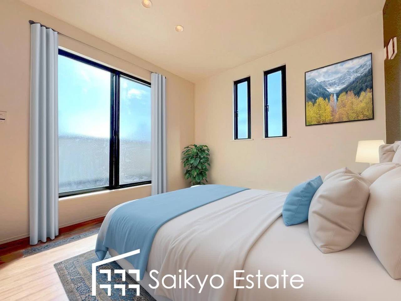 バルコニーに出入りの出来る洋室は、たくさん陽光が差し込む明るい空間です。朝も気持ちよく起きられそうです♪※家具類はCG加工しています。
