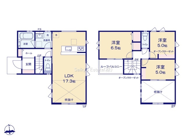 | 間取 | 3LDK (LDK17.3帖、洋室6.5帖、洋室5.0帖、洋室5.0帖) | ||