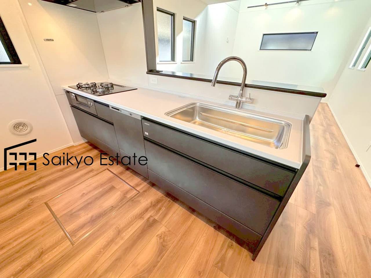 リビングにいる家族とコミュニケーションをとりながら作業が出来る人気のカウンターキッチン。お子様がリビングにいても目が届くので安心です。