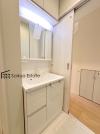 三面鏡付きの洗面化粧台を完備。収納スペースも十分ございますので、ドライヤーなどすっきりと片付きます♪