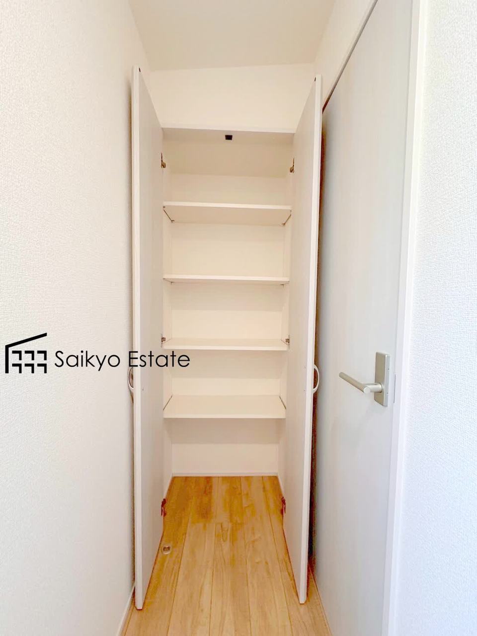 キッチン横にはパントリーがございます。備蓄庫としてはもちろん、調理道具や日用品の収納なども出来て便利です。