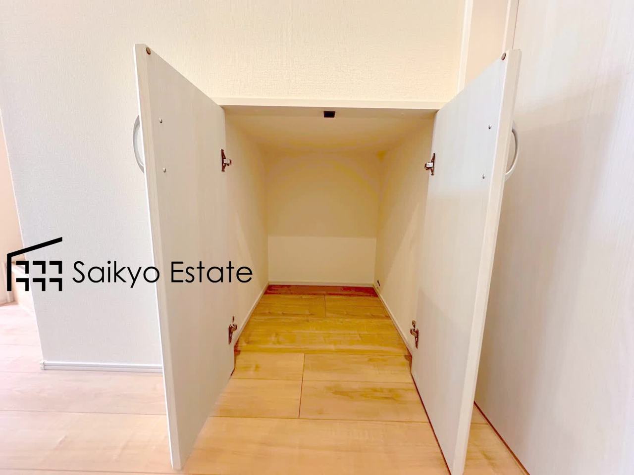 1階ホール部分には階段下を利用した収納スペースがございます。日用品の収納や備蓄庫としても使える便利な空間です。