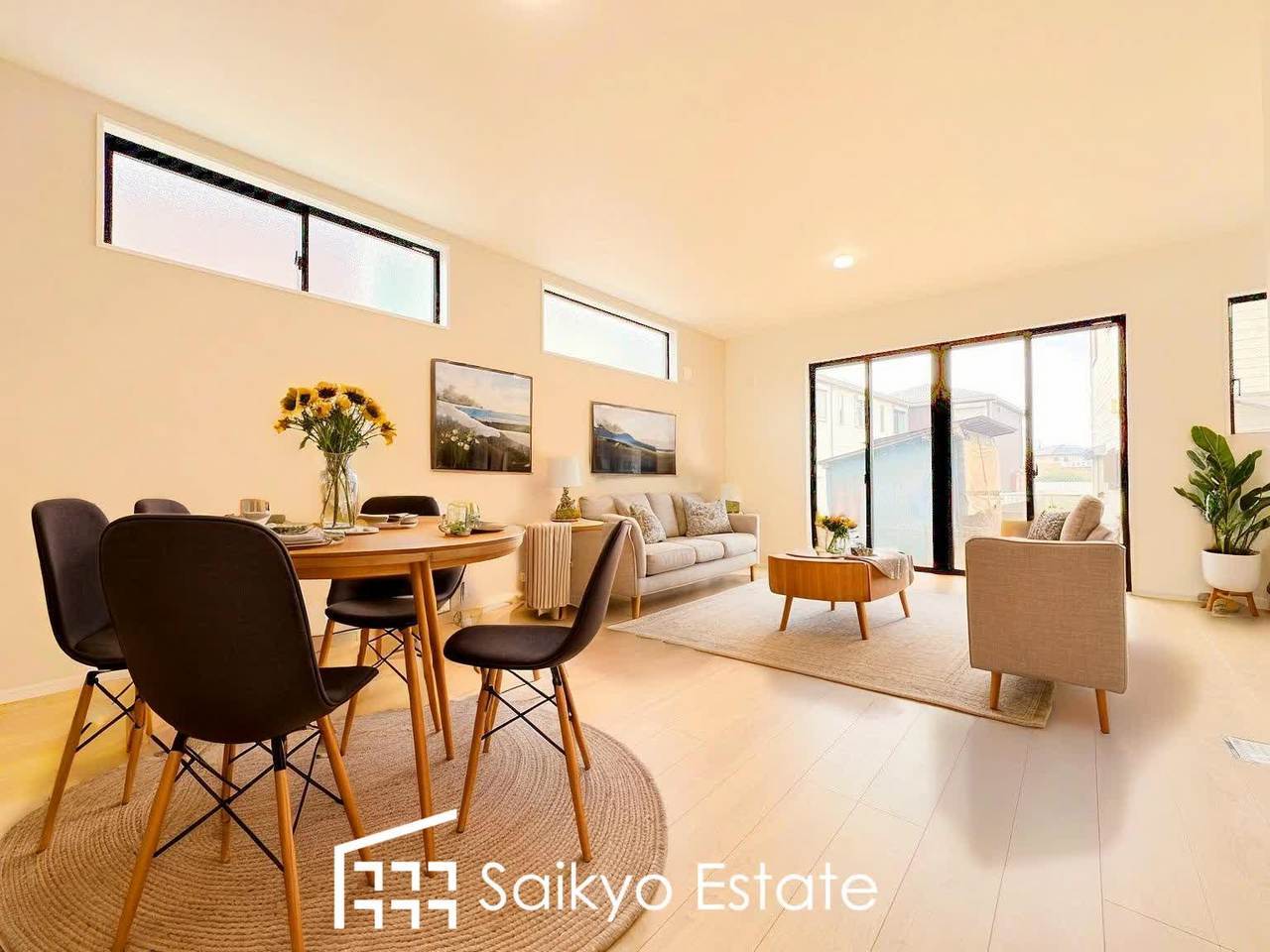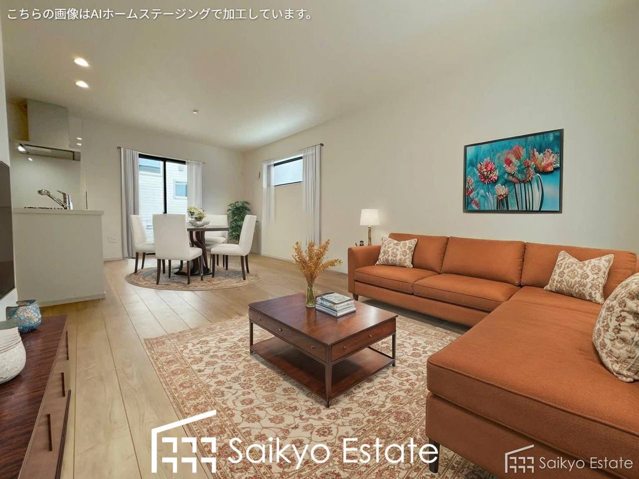 【施工例】広々としたLDKは家具の配置やコーディネイトが楽しめます!ダイニングテーブルとソファーを置いても余裕の広さです!