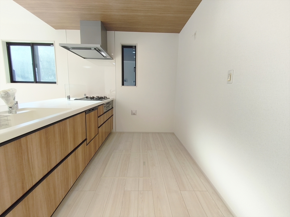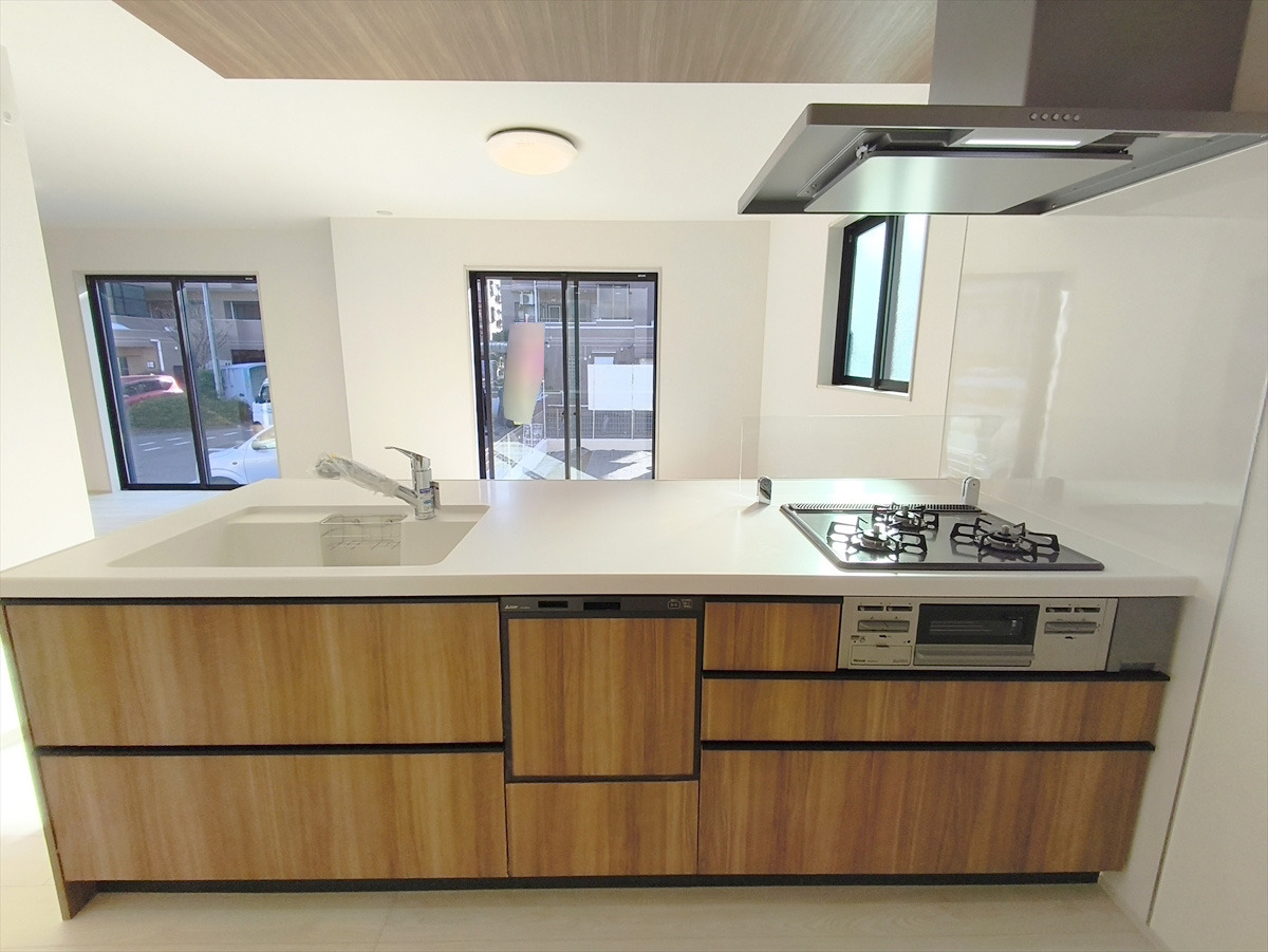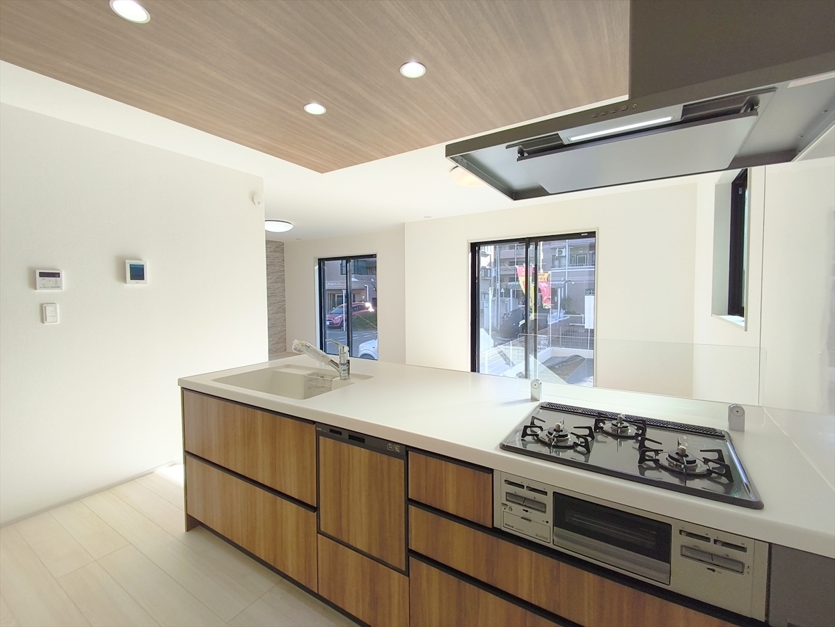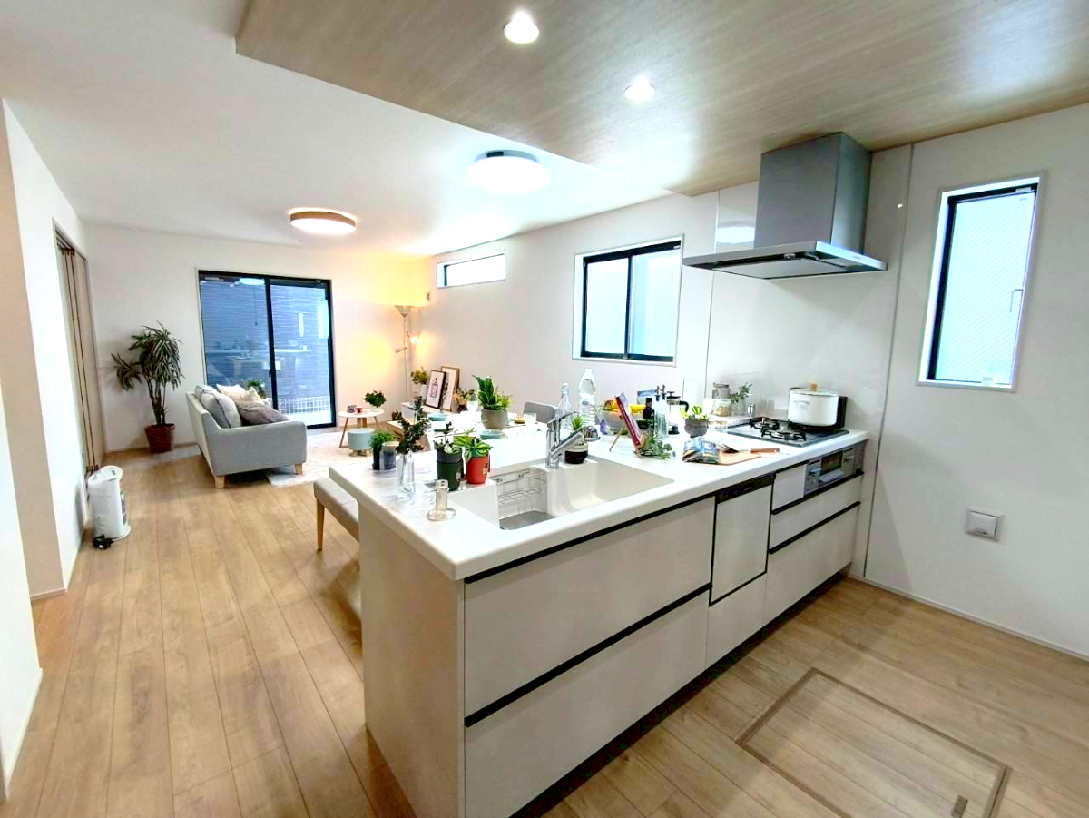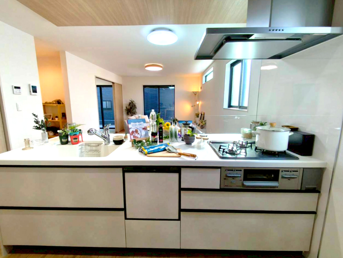 リビングにいる家族とコミュニケーションがとりやすい、人気のカウンターキッチンを採用。小さなお子さんがリビングにいても目が届くので安心。来客時には会話を楽しみながらお料理もできます。食洗機付です。 ■小平市栄町2 新築一戸建て■
