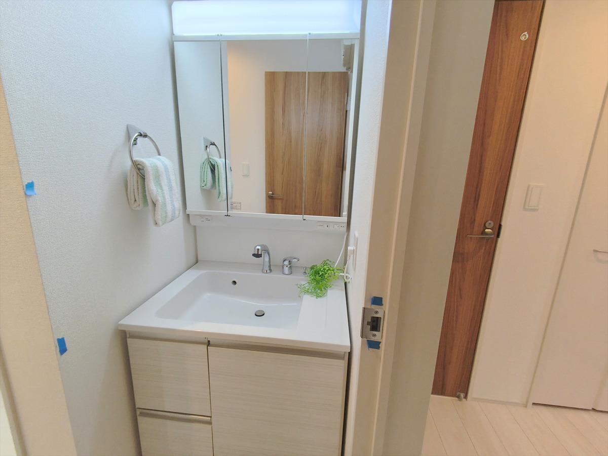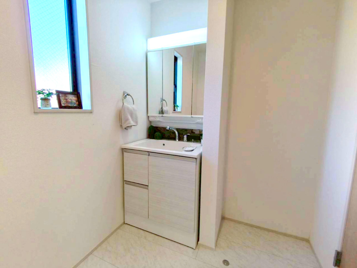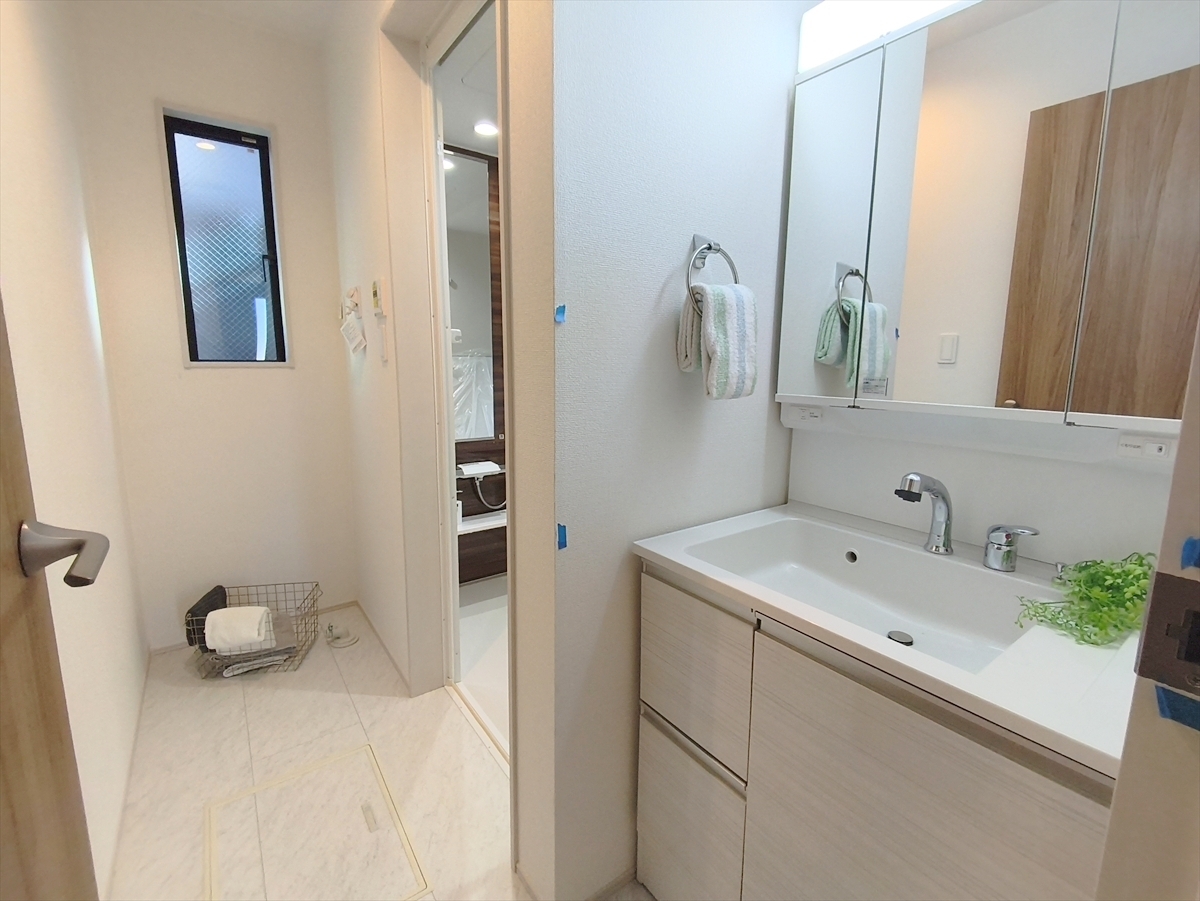 清潔なパウダールームは身だしなみチェックや肌のお手入れに最適です。収納もあり、スッキリと見映えの良い空間に拵えました。時間に余裕とゆとりを持たせます。■小平市栄町2 新築一戸建て■