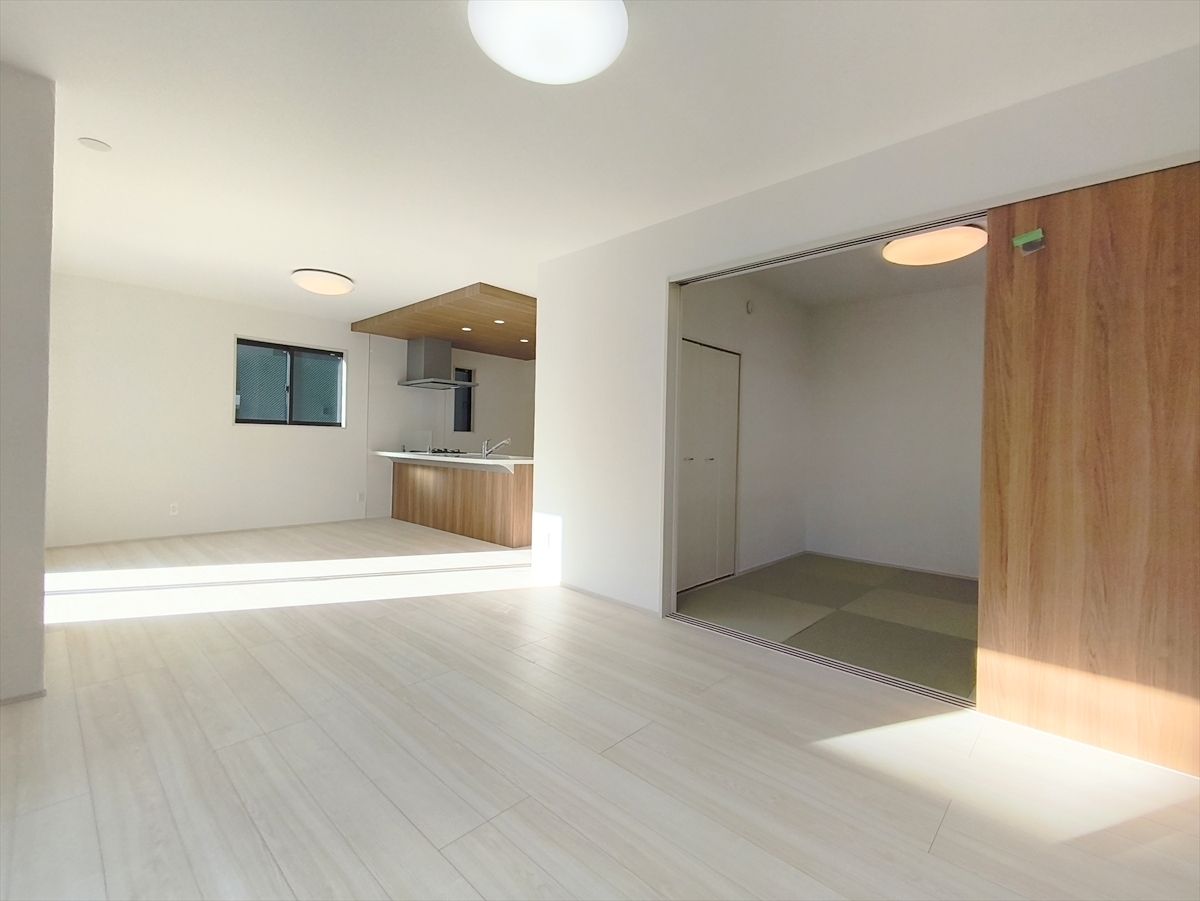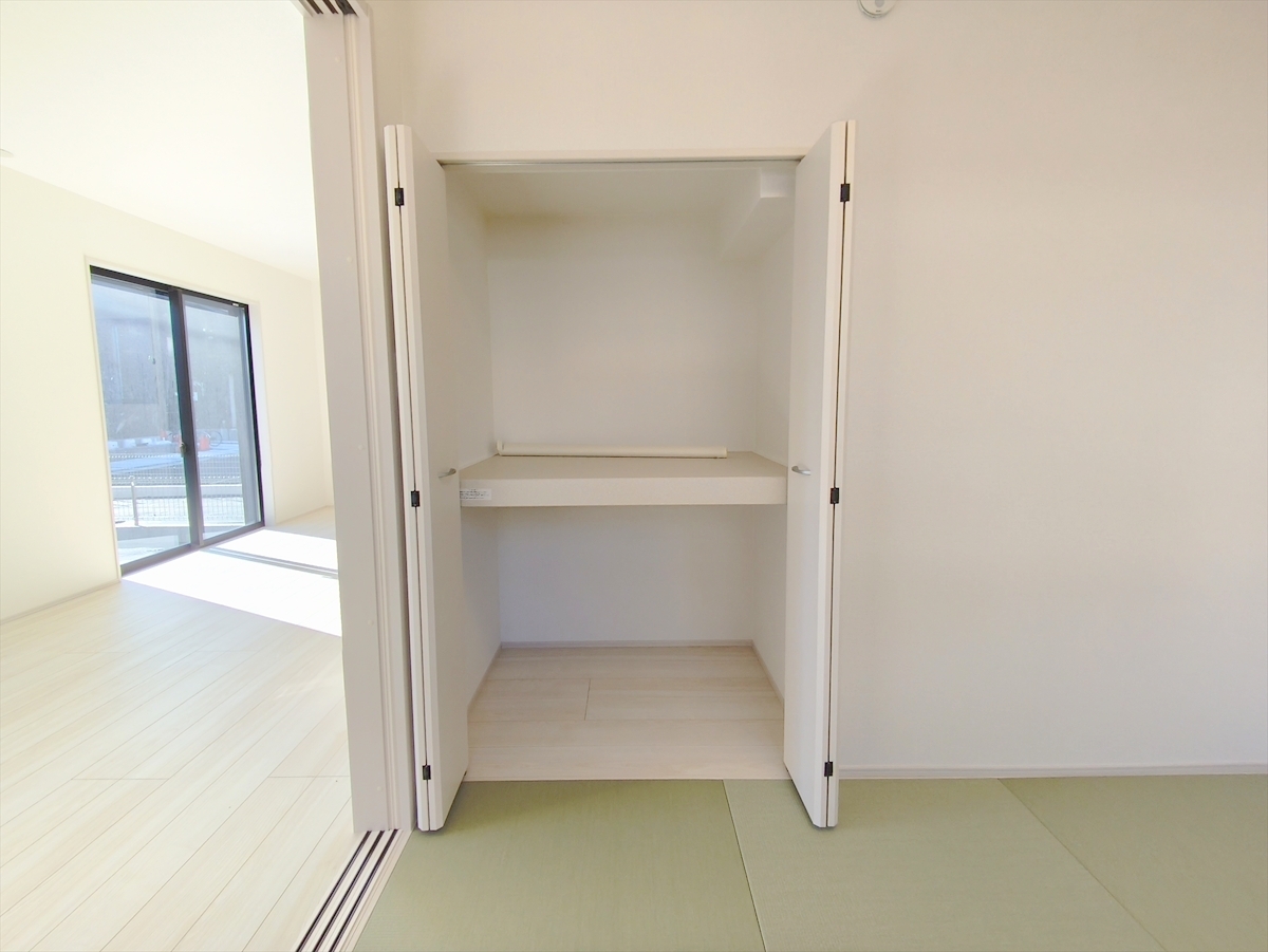 LDKと続き間になった和室。来客時や寛ぎの時間に、あると便利な癒し空間。便利な収納も完備。 ■小平市栄町2 新築一戸建て■