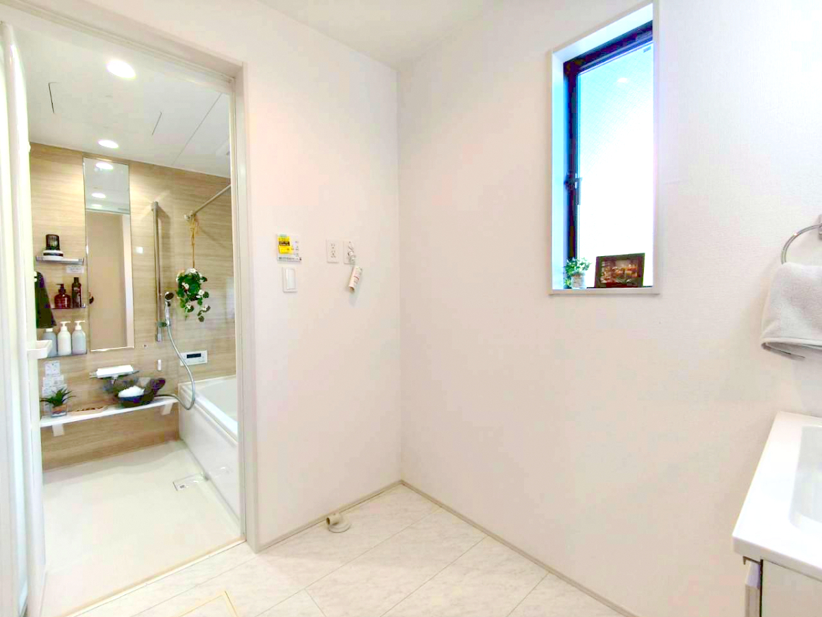ゆったりと足を伸ばせる一坪タイプの浴室です。浴室換気乾燥機付きですので、カビの発生も抑制出来ます。 ■小平市栄町2 新築一戸建て■
