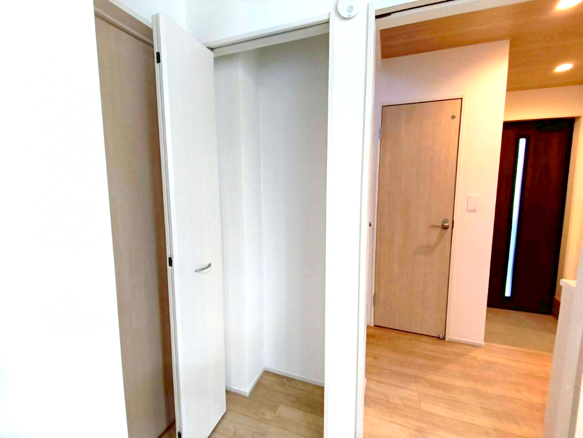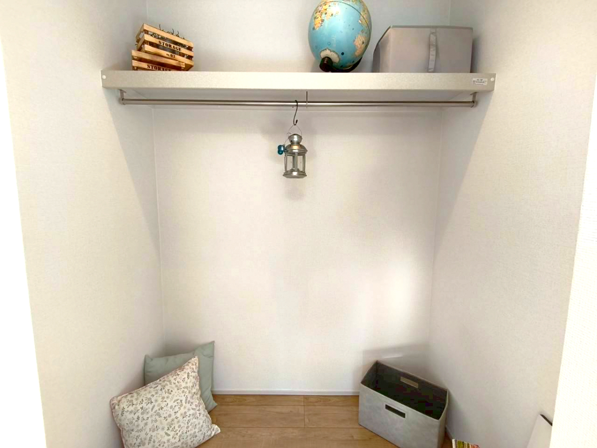 ひと目で収納物を確認できるウォークインクローゼットは、ゆとりの広さを備えた大型収納。数多くの衣類に加え、足元には引出しや衣装箱、シューズボックスなども収納することができます。 ■小平市栄町2 新築一戸建て■
