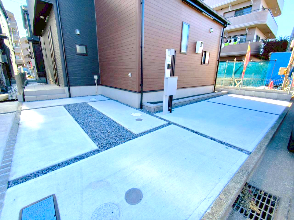 カースペース2台利用可。通勤用、家庭用で分けて駐車できるので日々の生活も快適ですね。 ■小平市栄町2 新築一戸建て■