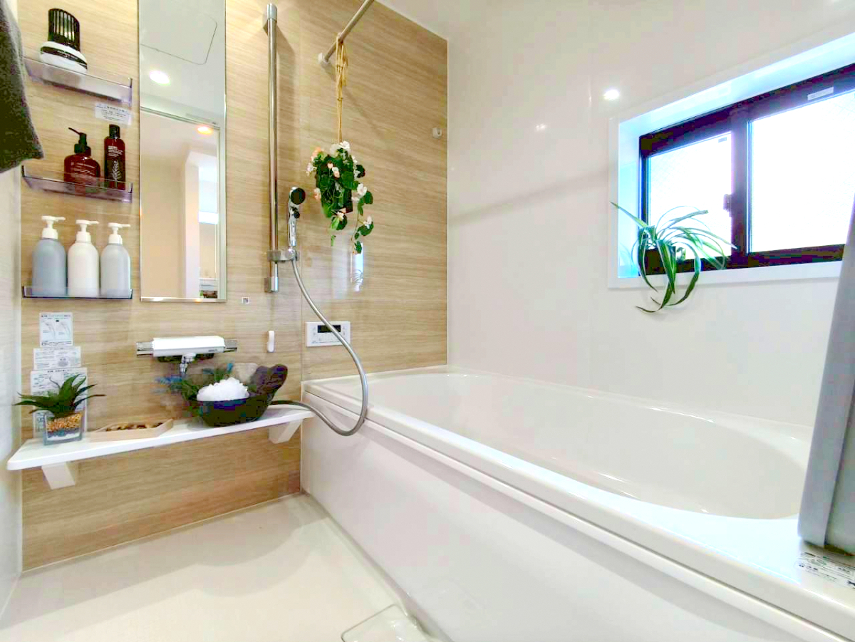 1坪サイズのバスルーム。浴室換気乾燥機を標準装備。乾きやすい床やお手入れのしやすい排水口など、いつも清潔にご使用いただけます。 ■小平市栄町2 新築一戸建て■