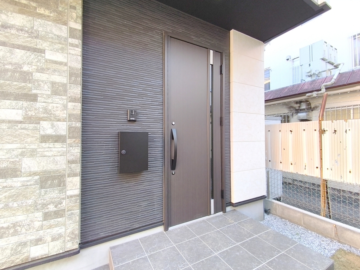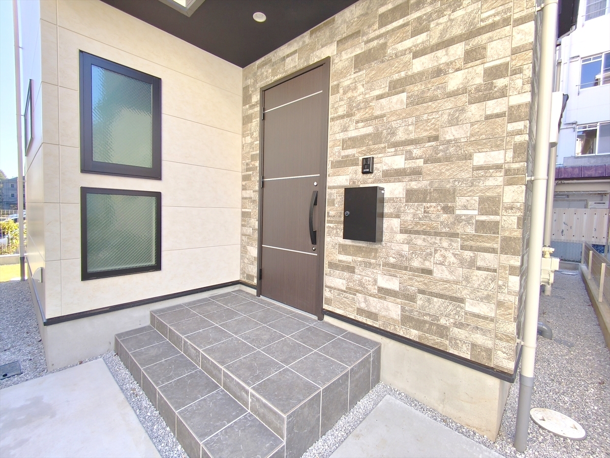 清潔感あふれるエントランスと高級感ある玄関扉が出迎えます。思わず「ただいま」と言いたくなるそんな玄関先です。 ■八王子市椚田町 新築戸建て■
