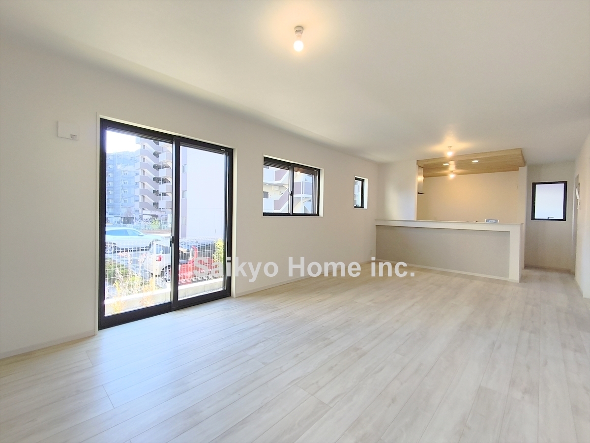 陽光ふりそそぐ明るいリビング。対面式キッチンは、家事をしながら家族の様子が一目でわかる安心&便利設備 ■八王子市椚田町 新築一戸建■