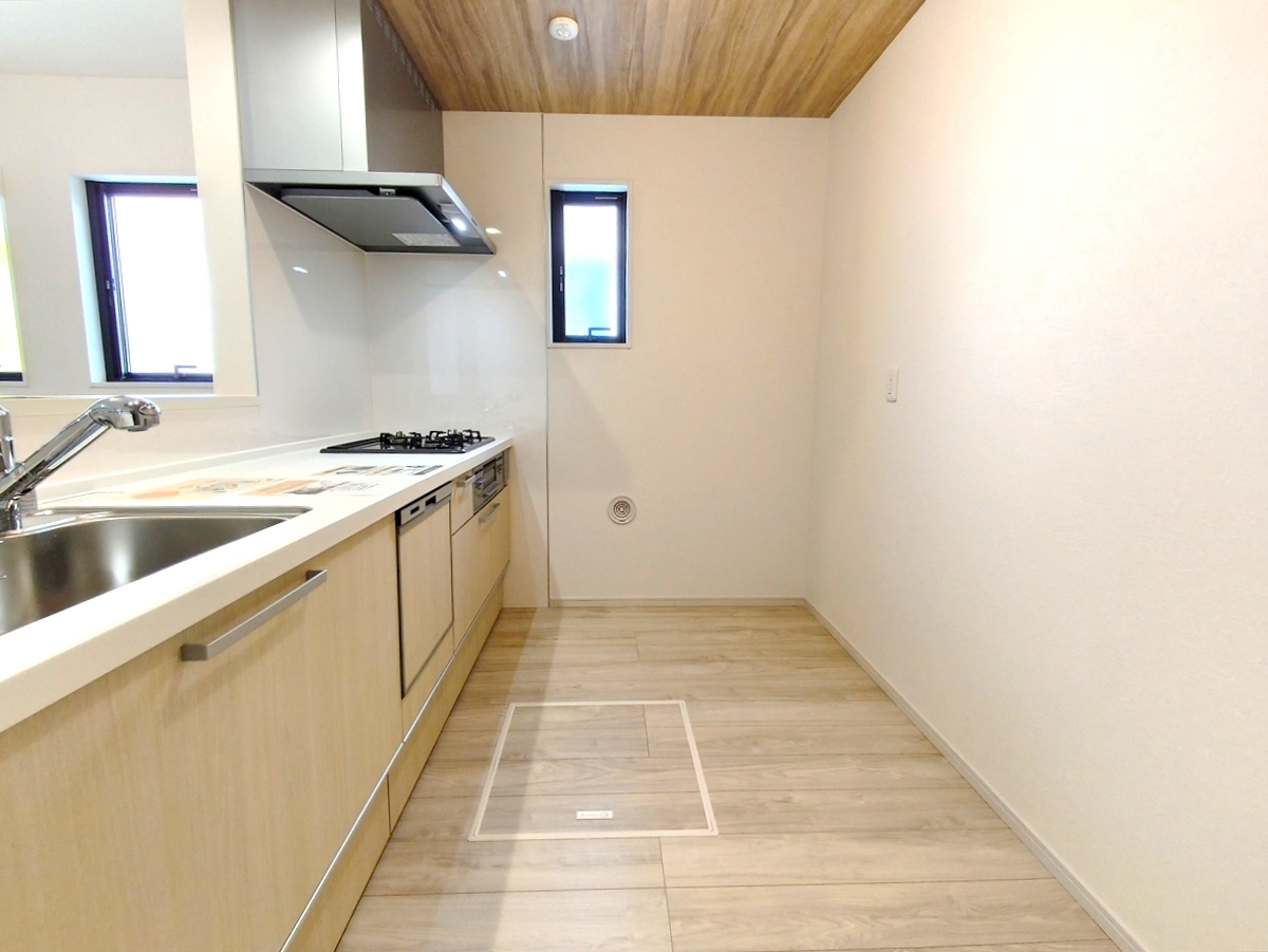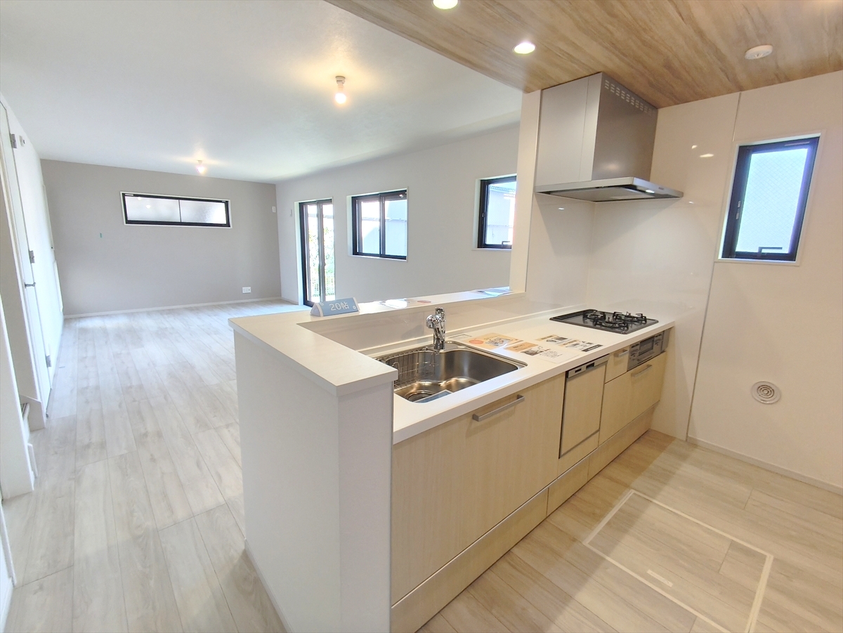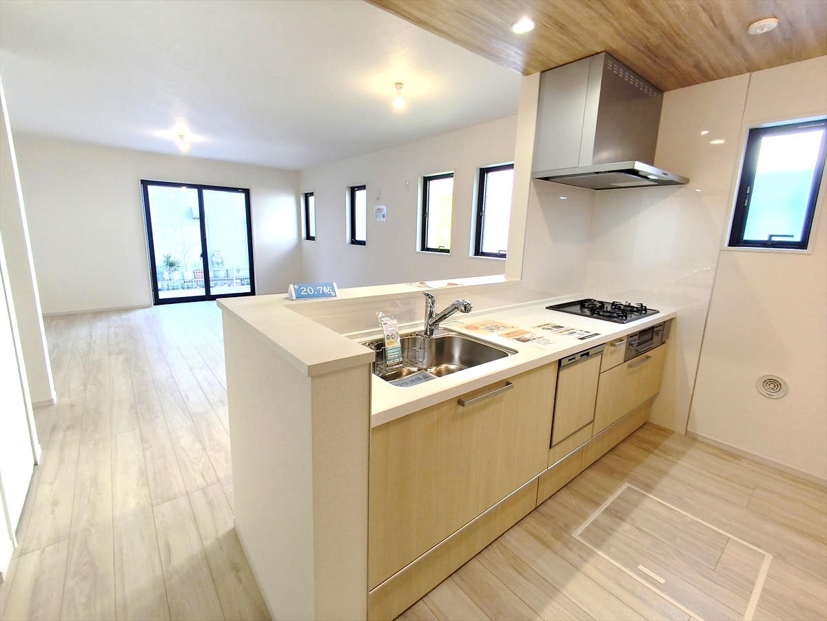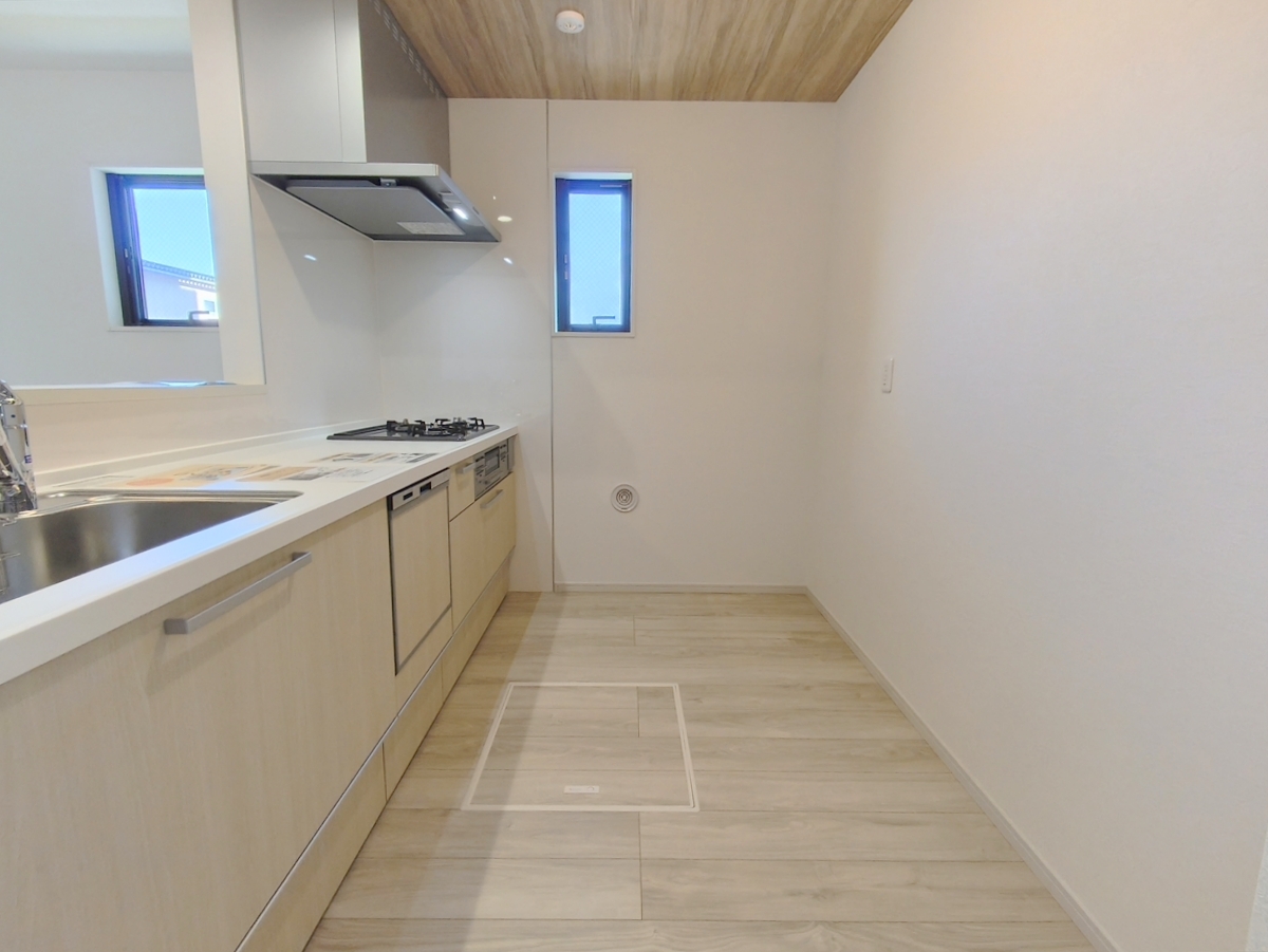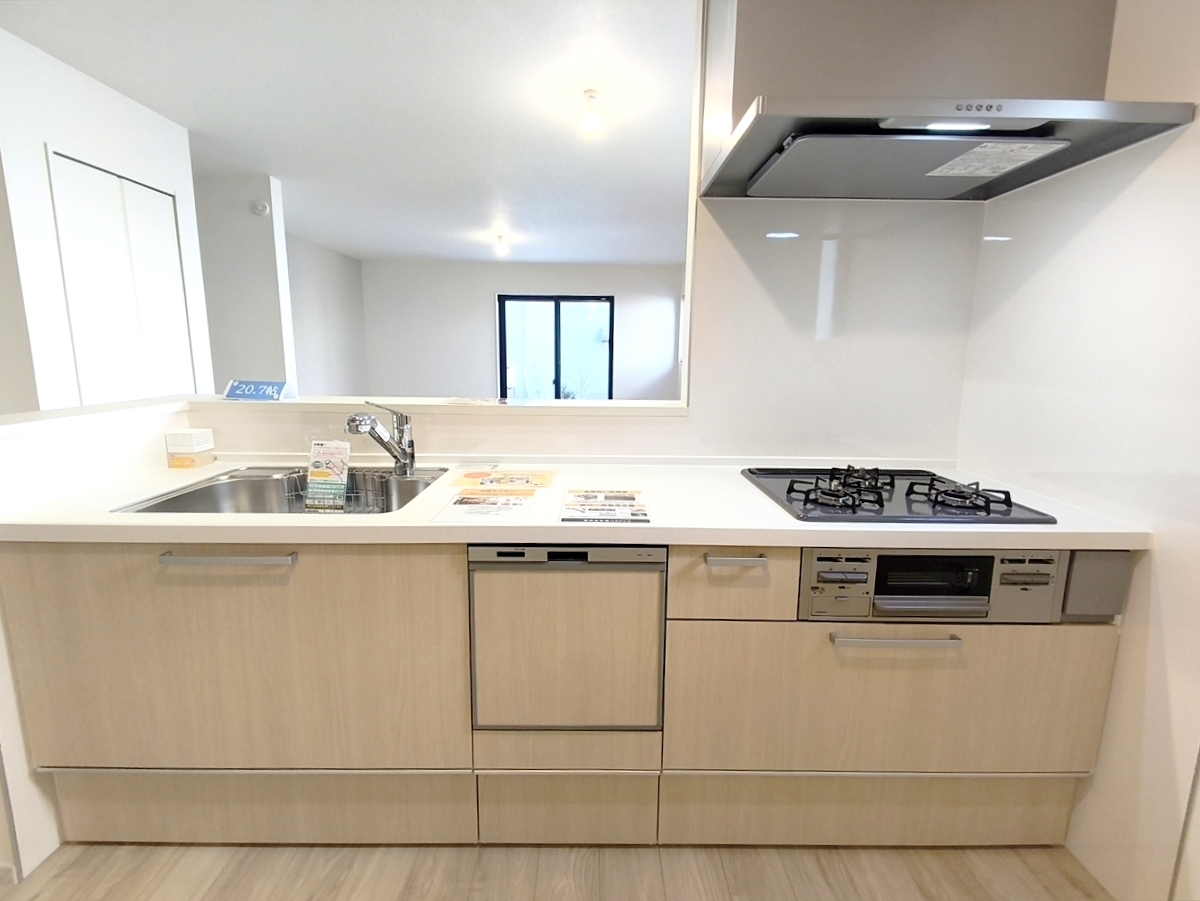 リビングを見渡せる対面キッチンはビルトイン食洗機付きで後片付けもスムーズに。 ■八王子市椚田町 新築一戸建■
