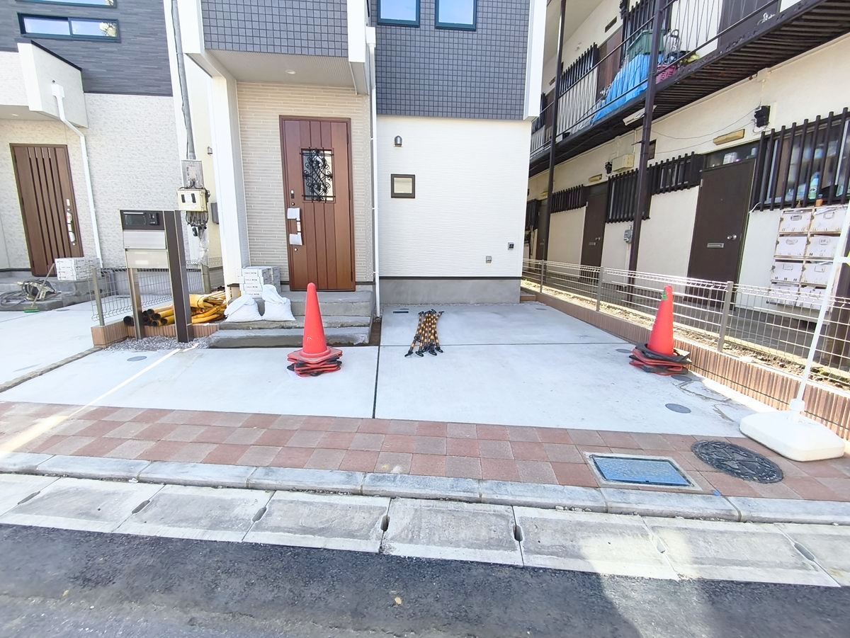 カースペースはコンクリート仕上げ。雨の日でも足元を気にすることなく駐車できます。 ■府中市是政1 新築一戸建て■