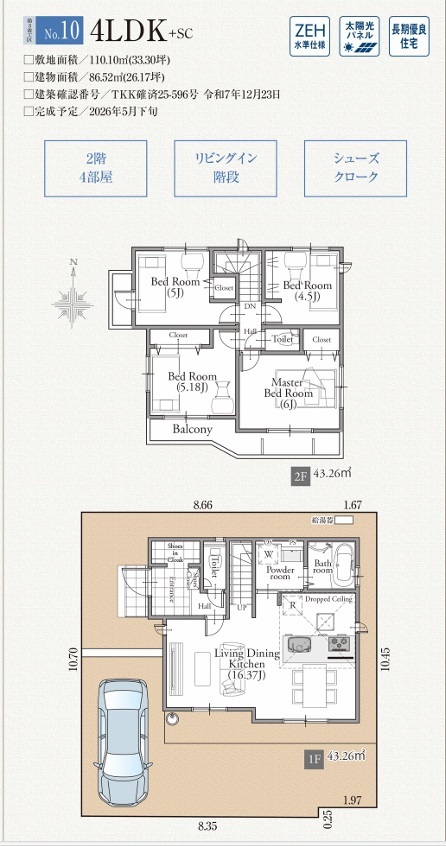 | 建築確認番号 | TKK確済25-596号 | 駐車スペース | 1台(カースペース) 料金:無料 |