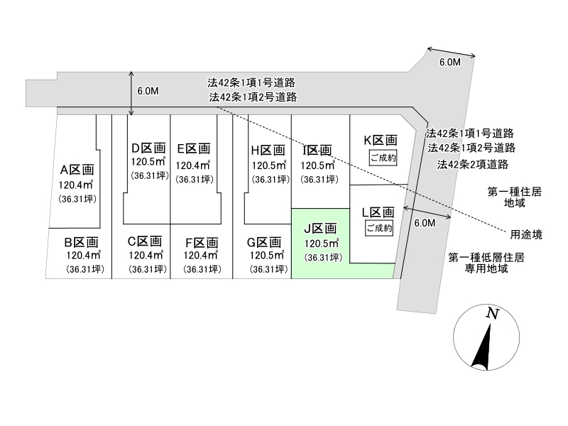- J号地 小金井市前原町4丁目 建築条件なし売地 全12区画