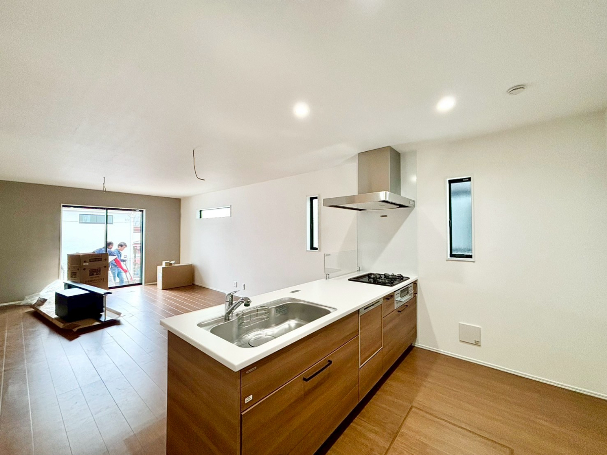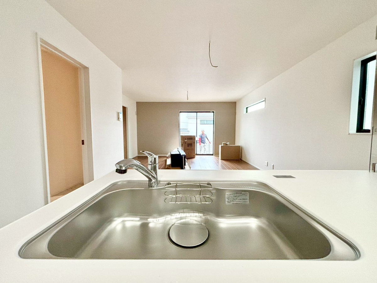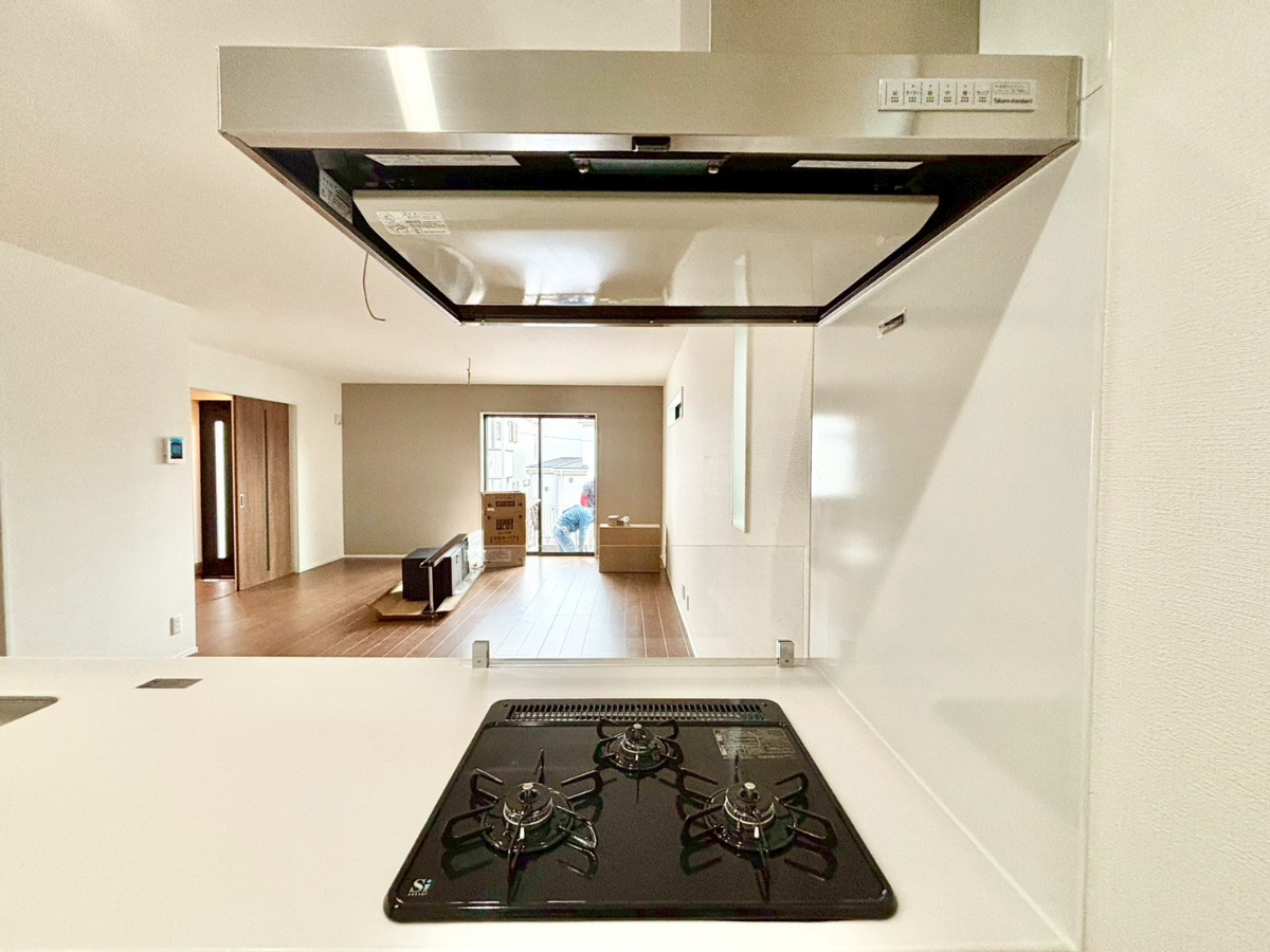 キッチンに立った位置から、リビングにいる家族に目線が届く見守りキッチン!■八王子市上柚木 新築一戸建■