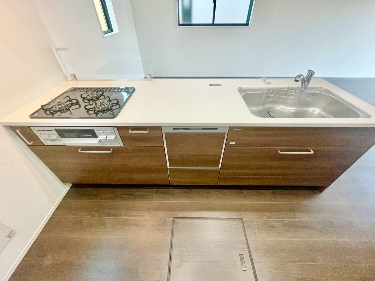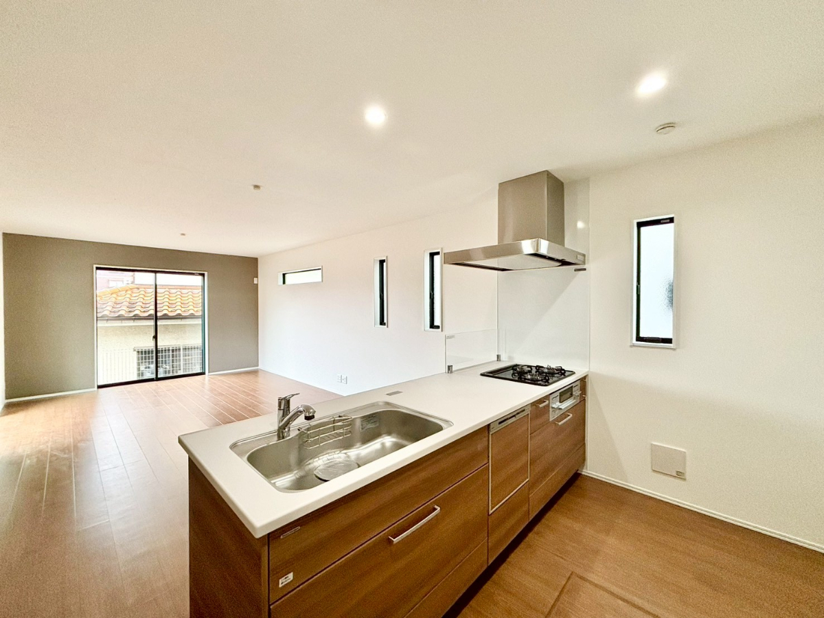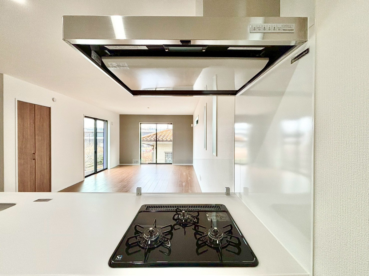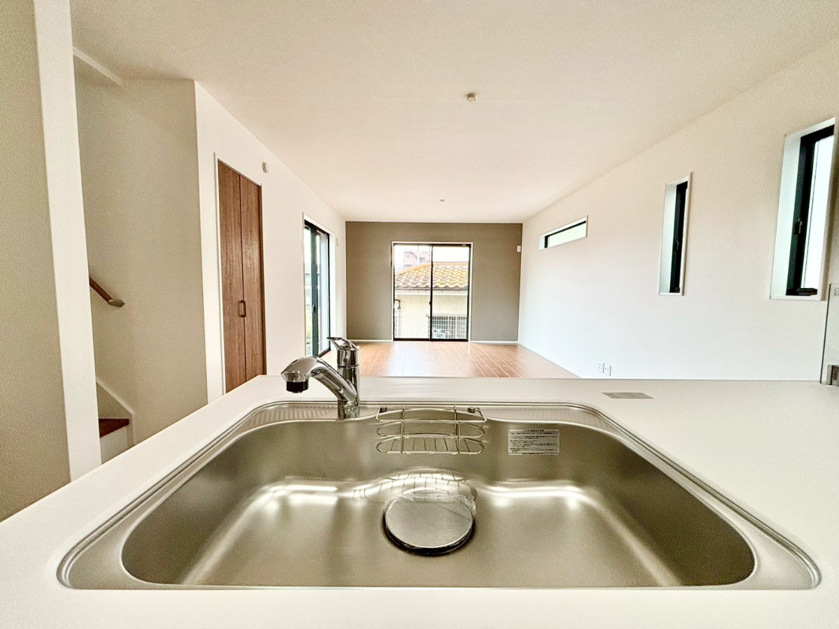 キッチンに立った位置から、リビングにいる家族に目線が届く見守りキッチン!■八王子市上柚木 新築一戸建■