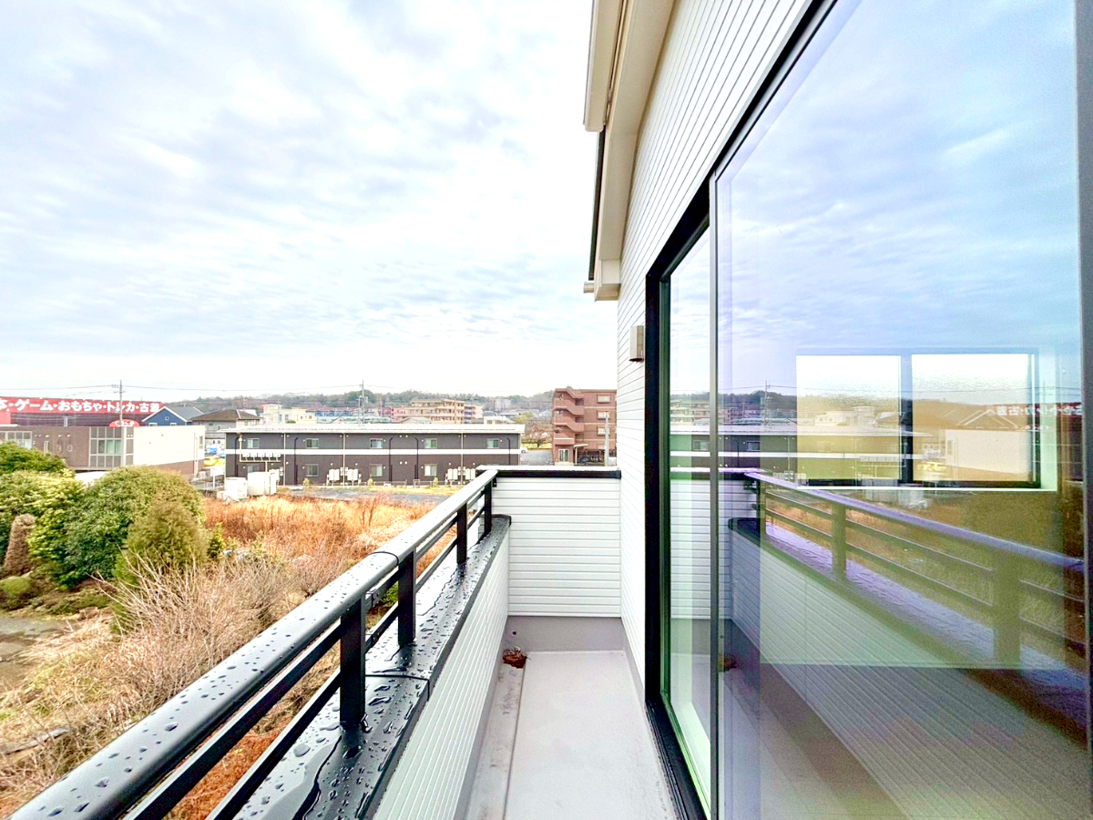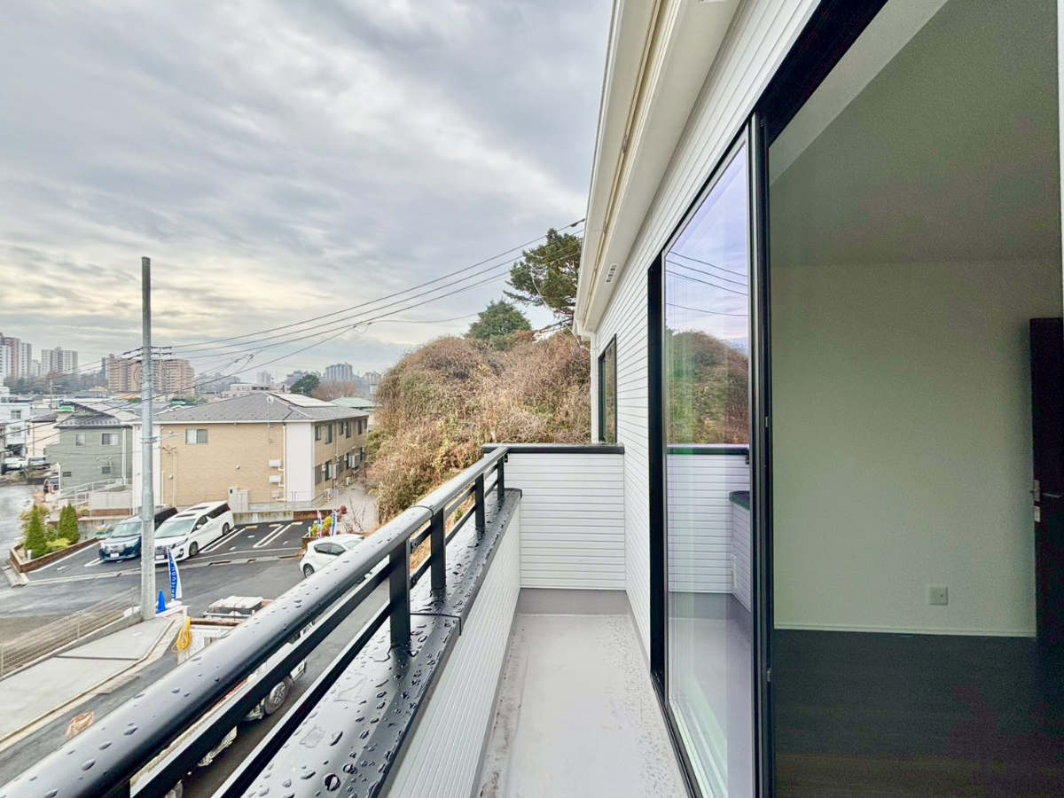 陽当りの良いバルコニー。心地よい風が吹き込み洗濯物だけでなく、お布団もふっかふかです。■八王子市上柚木 新築一戸建■