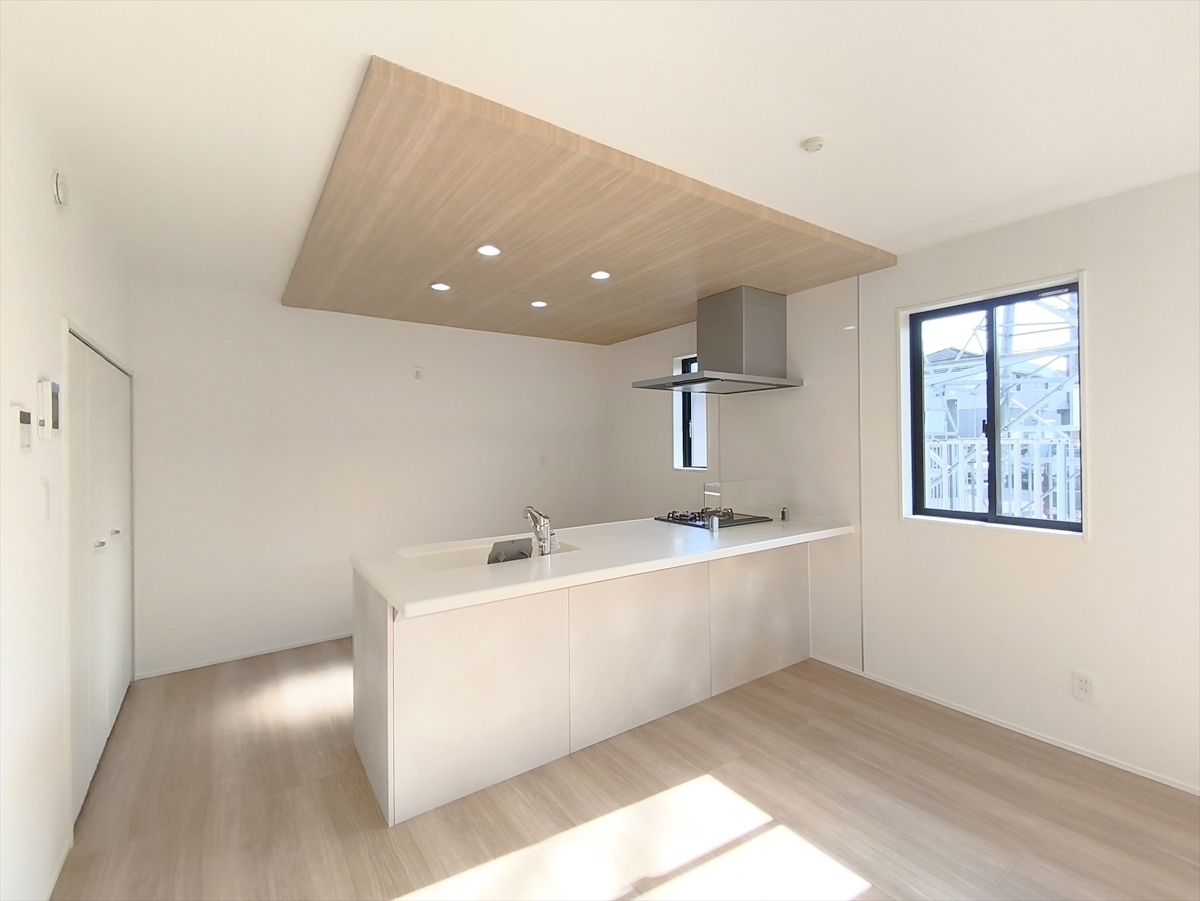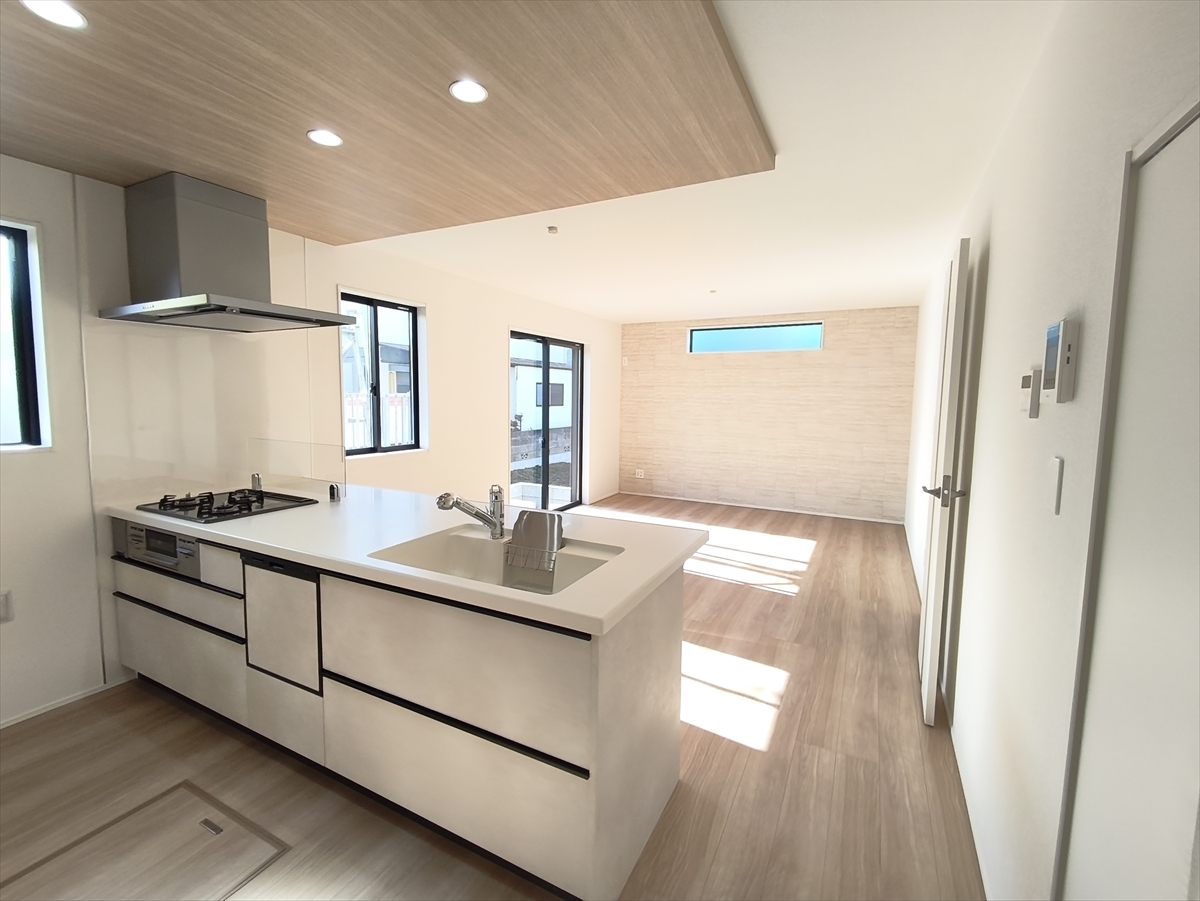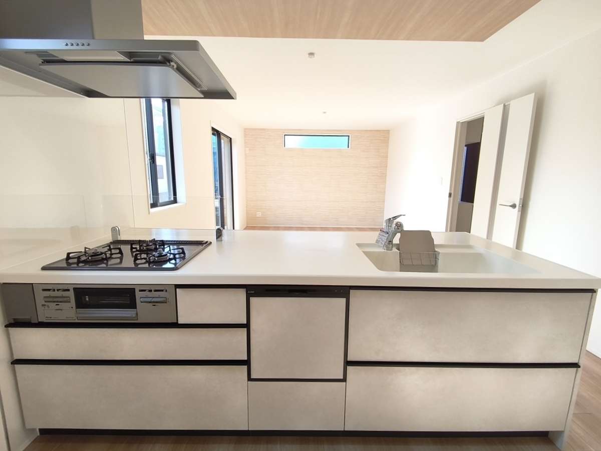 キッチンに立った位置から、リビングにいる家族に目線が届く見守りキッチン! ■府中市多磨町2 新築一戸建て■