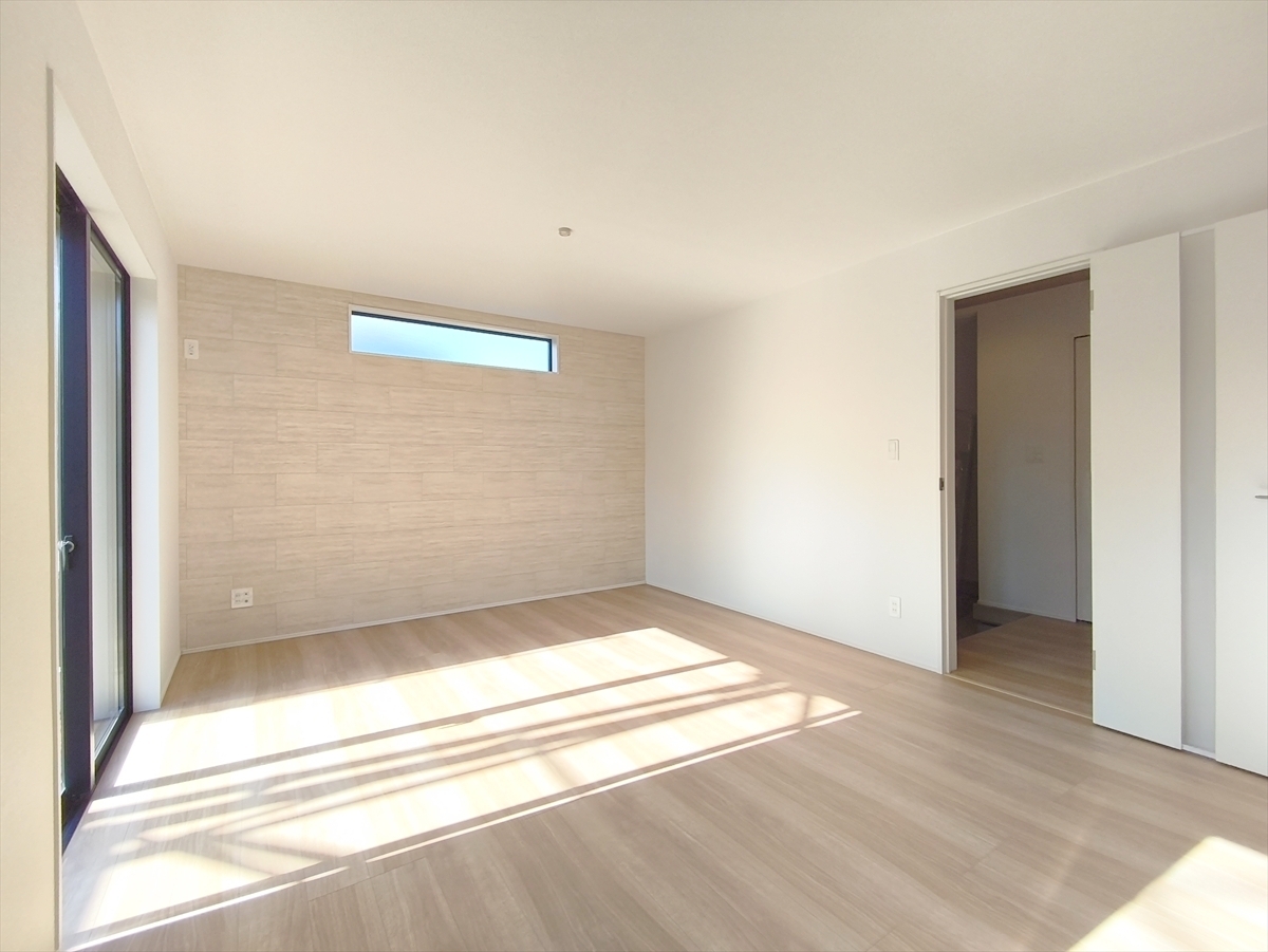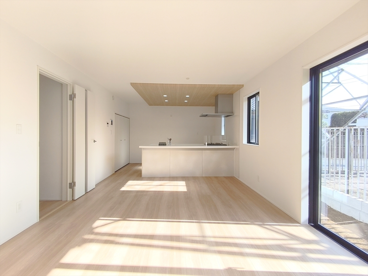 陽光をしっかり取り入れた、明るく広々としたリビング空間。家族団欒の場に最適です。 ■府中市多磨町2 新築一戸建て■