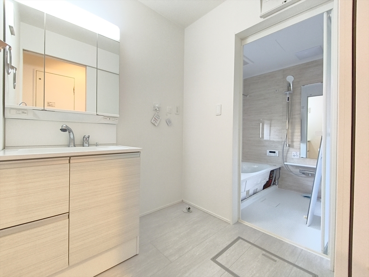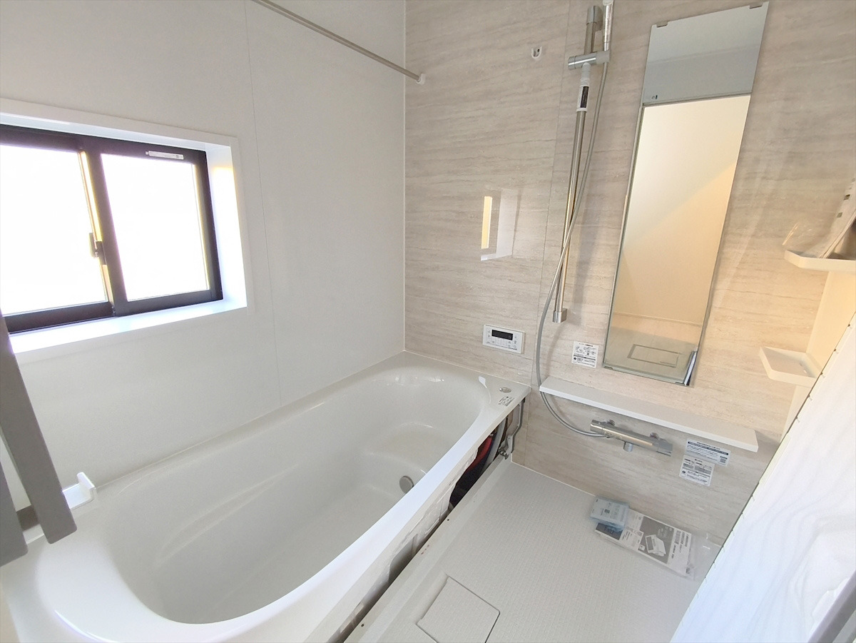 一日の疲れを癒すための心地よい浴室はゆとりあるサイズを採用。浴室乾燥機付き!汚れにくくお手入れしやすい浴室です。 ■府中市多磨町2 新築一戸建て■