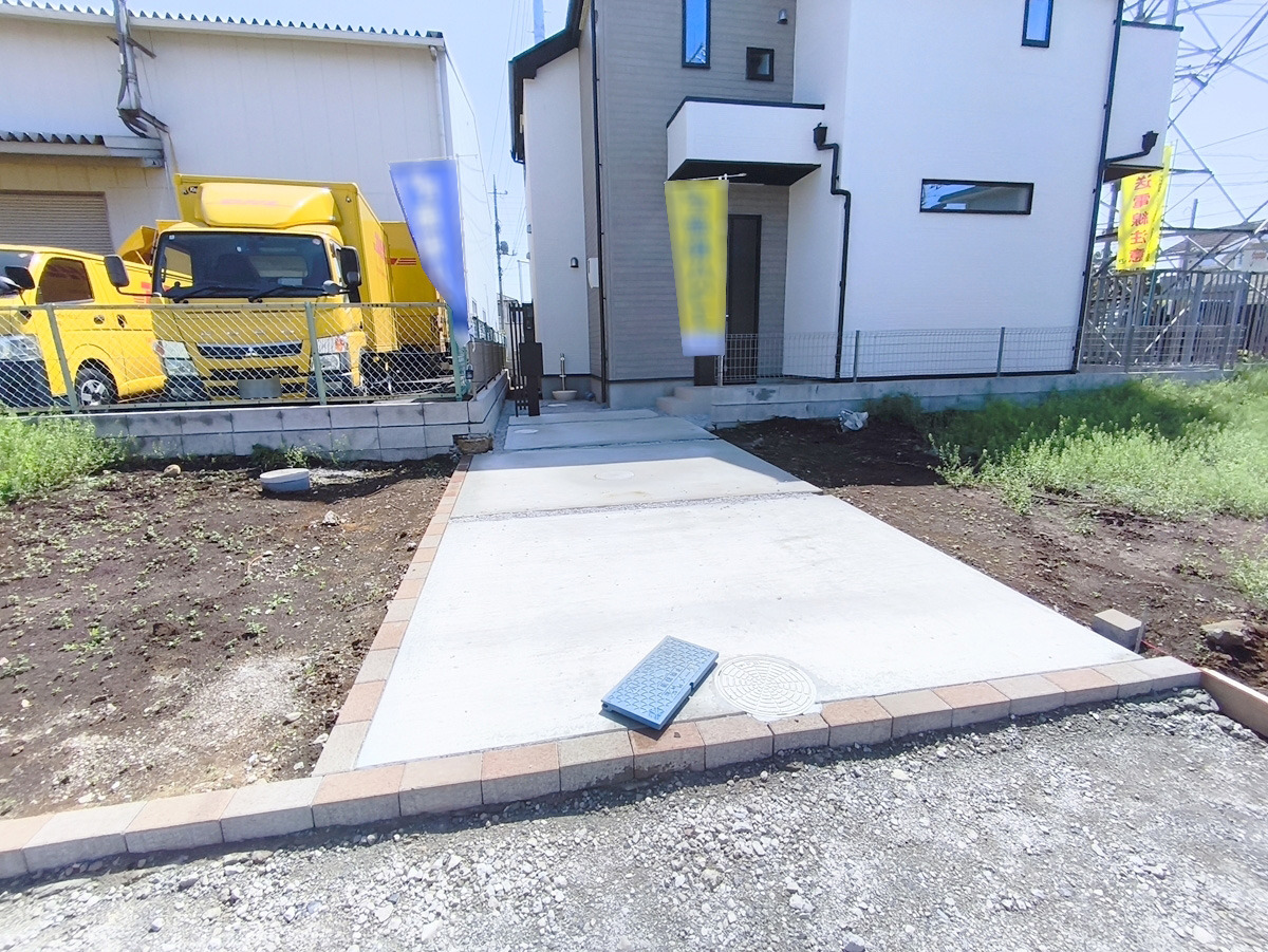 カースペースはコンクリート仕上げ。雨の日でも足元を気にすることなく駐車できます。 ■府中市多磨町2 新築一戸建て■