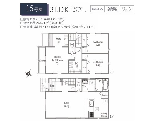 | バルコニー | 西向き | 建築確認番号 | TKK確済25-183号他、他 |