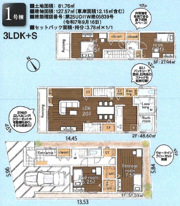 | 土地面積 | 76.25m² ~ 81.76m² (セットバック3.78m²) | ||