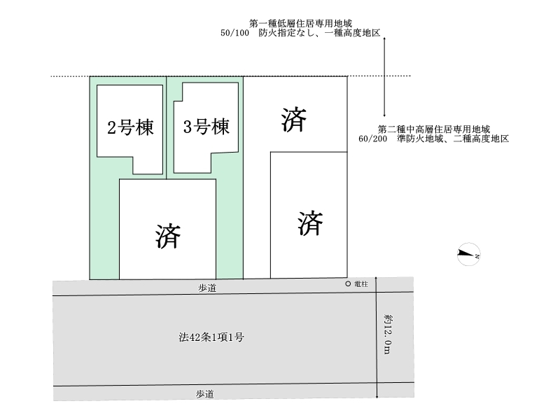 | 地目 | 宅地 | 用途地域 | 第二種中高層住居専用地域/第一種低層住居専用地域 |