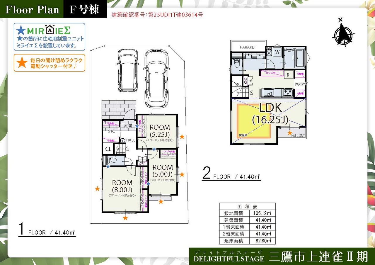 安心の木造住宅用制振ユニット「ミライエ」搭載物件!発砲ウレタン吹付断熱で快適な住まい!安心してお暮らしいただけます。