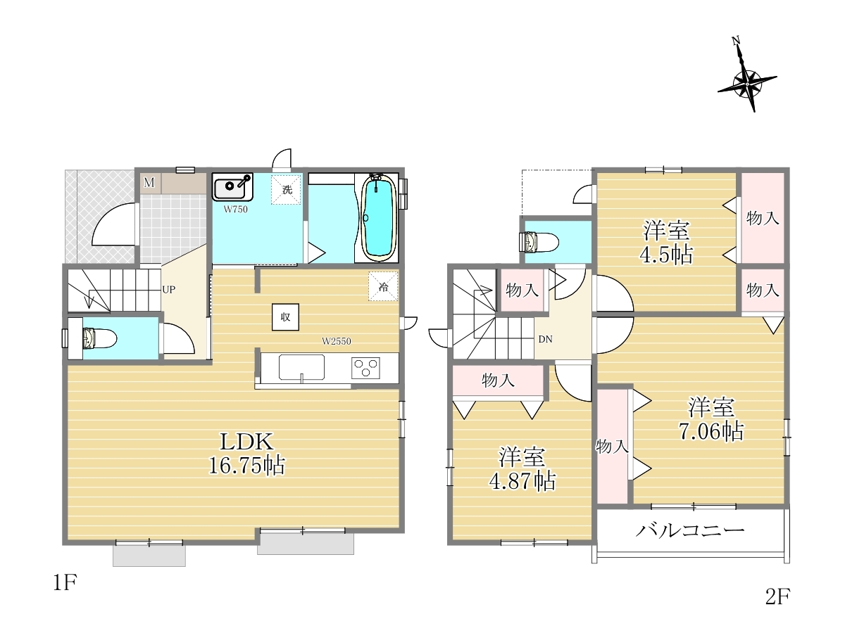 | 間取 | 3LDK (LDK16.75帖、洋室7.06帖、洋室4.87帖、洋室4.5帖) | ||