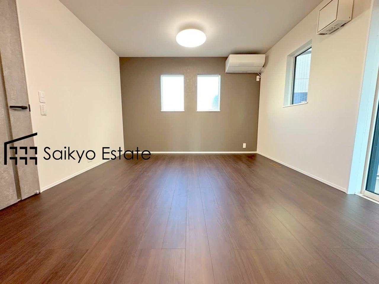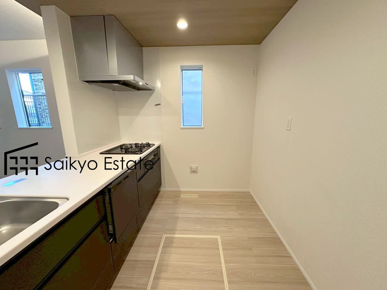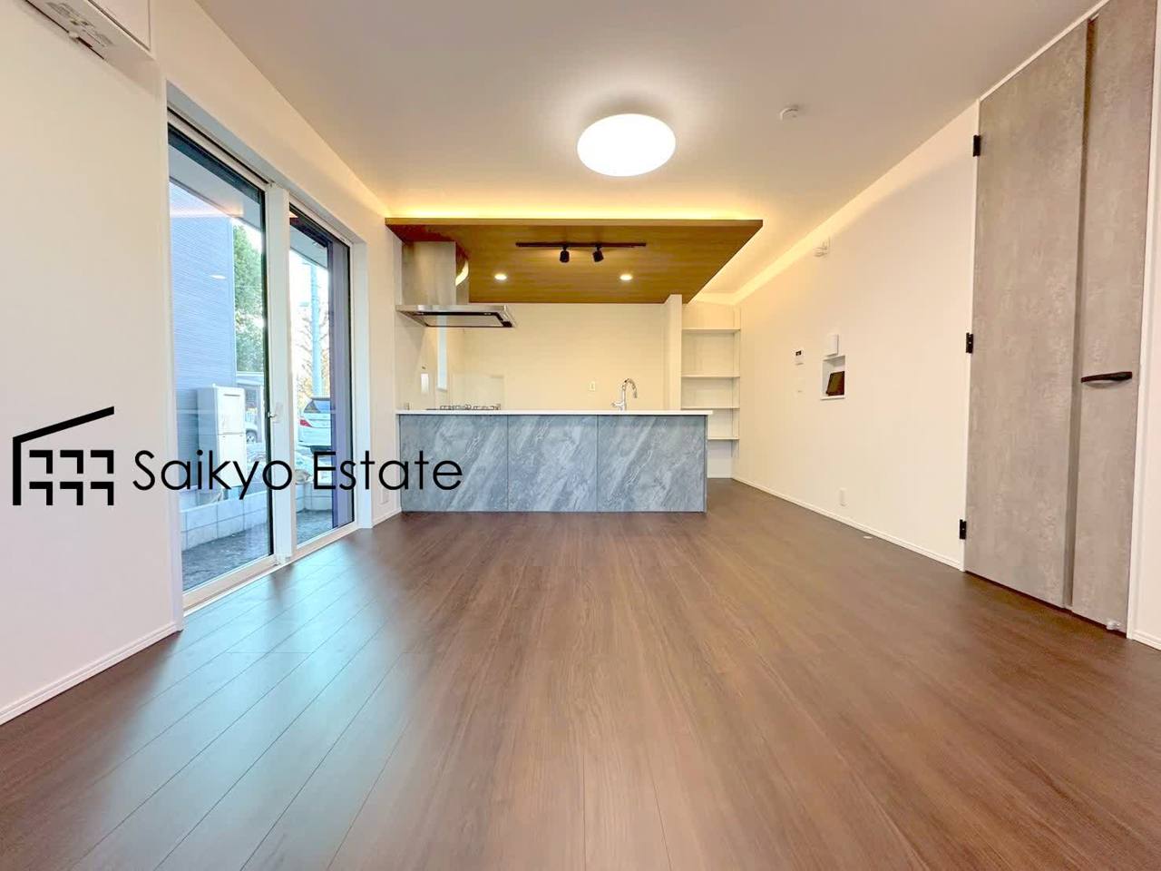 キッチンスペースは冷蔵庫や食器棚などを置くスペースが十分に確保されております。オシャレなカップボードを置きたくなりますね♪
