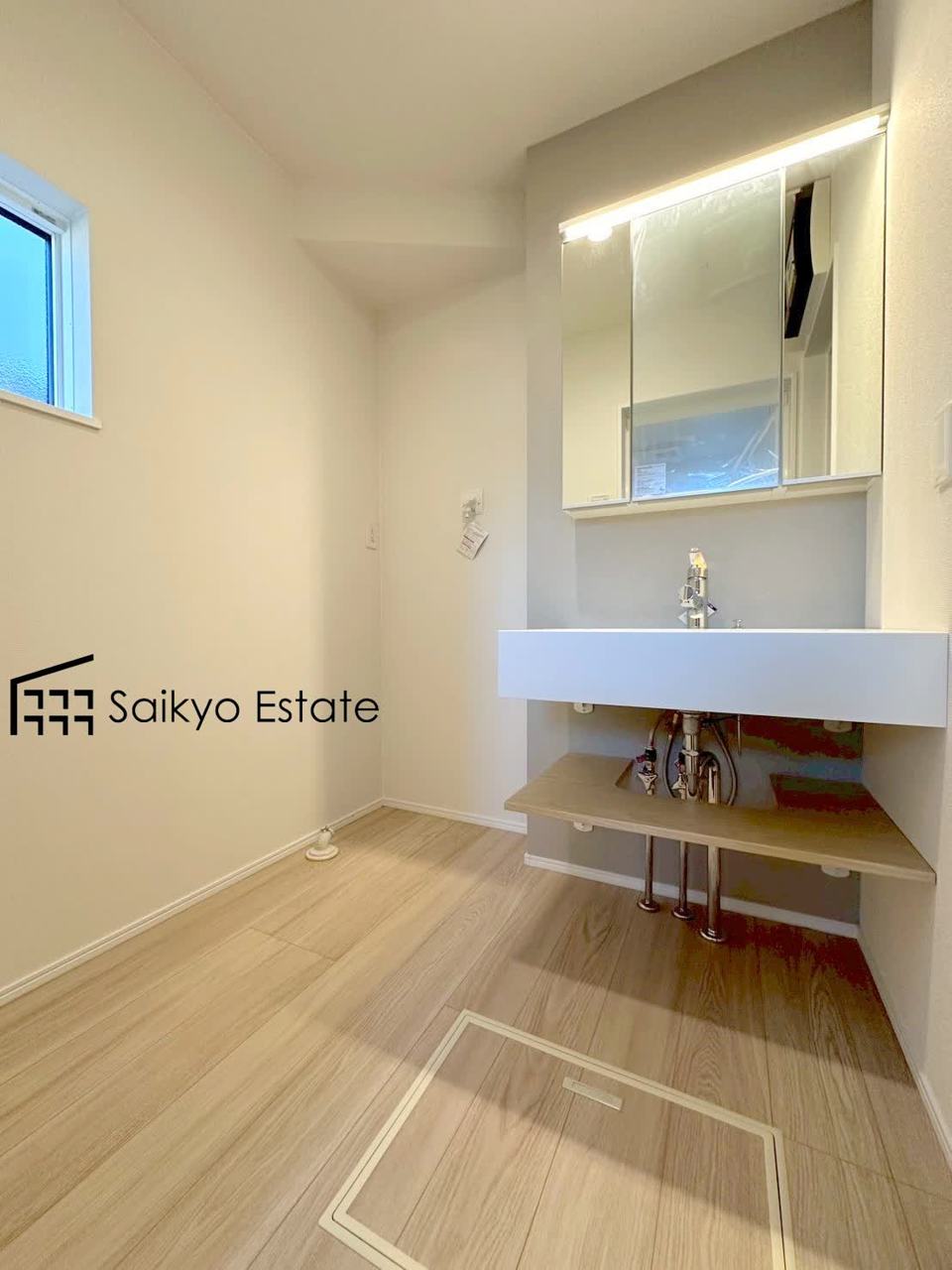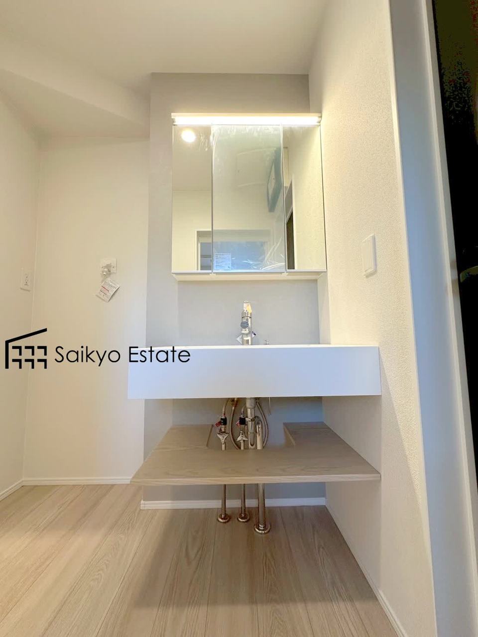 三面鏡付きの洗面化粧台を完備。オシャレな洗面台は朝の身支度も楽しくなりそう♪
