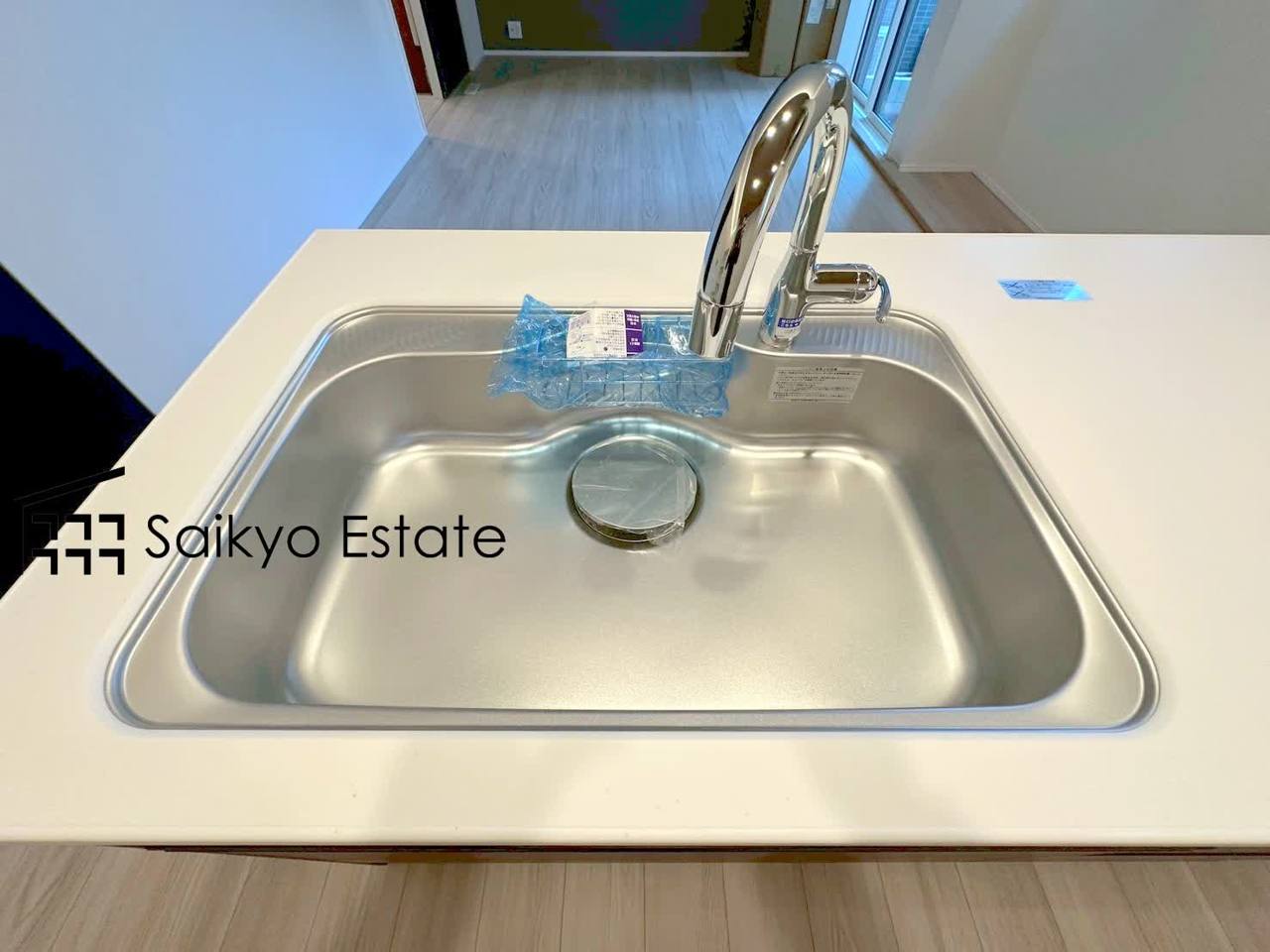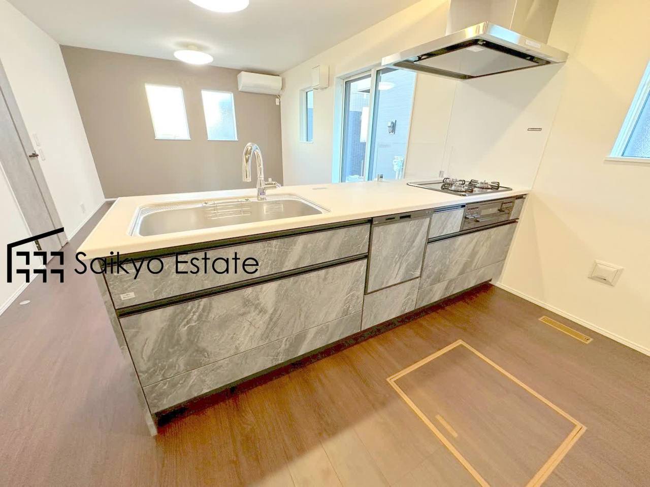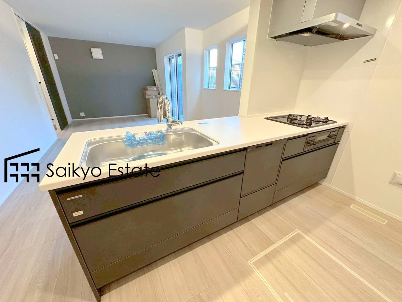 リビングにいる家族とコミュニケーションをとりながら作業が出来る人気のカウンターキッチン。お子様がリビングにいても目が届くので安心です。