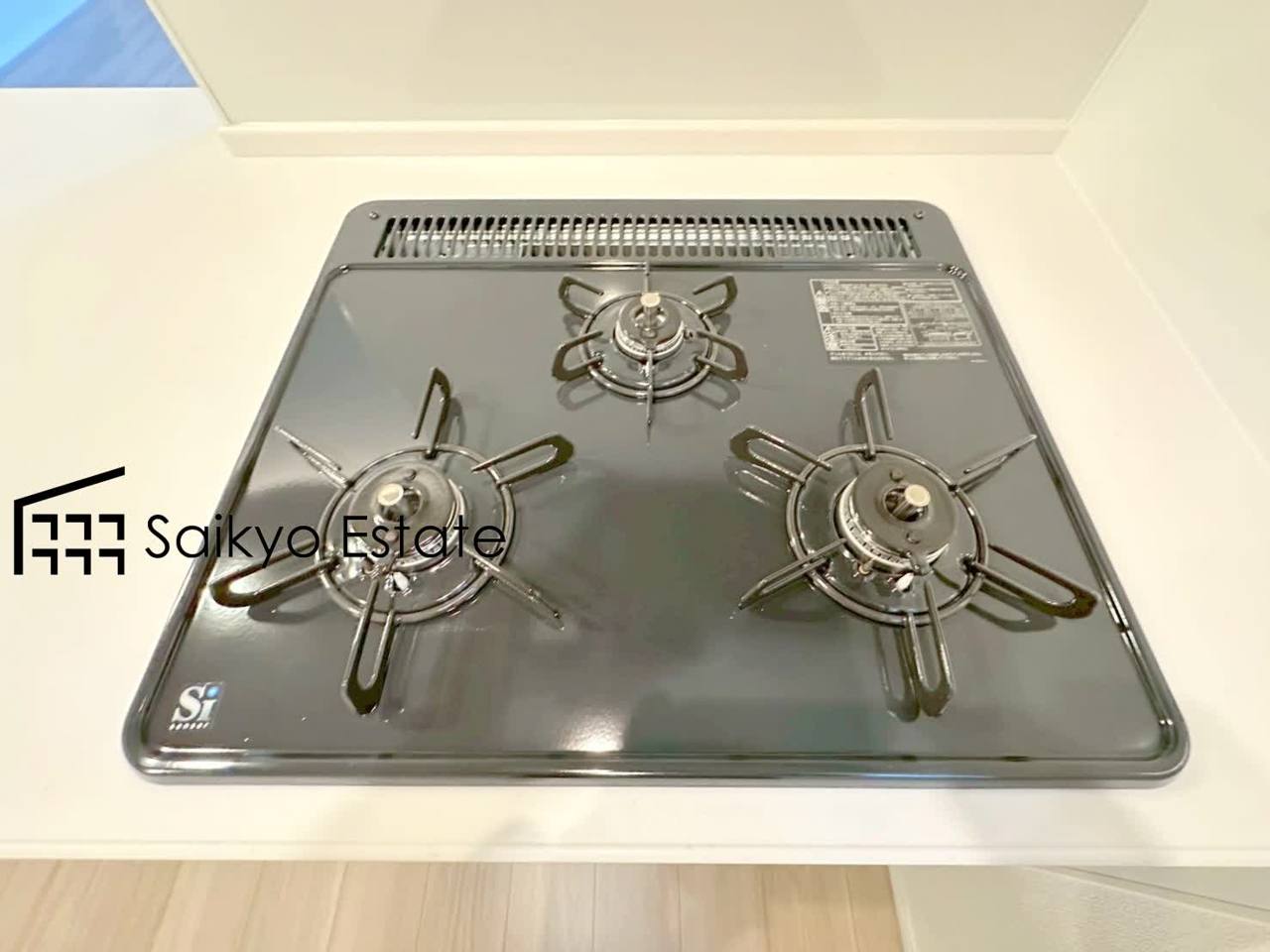 「3口ガスコンロシステム」はたくさんの料理が同時に作れて便利な上、凹凸が少ないフラットトップなのでお掃除も楽々です。