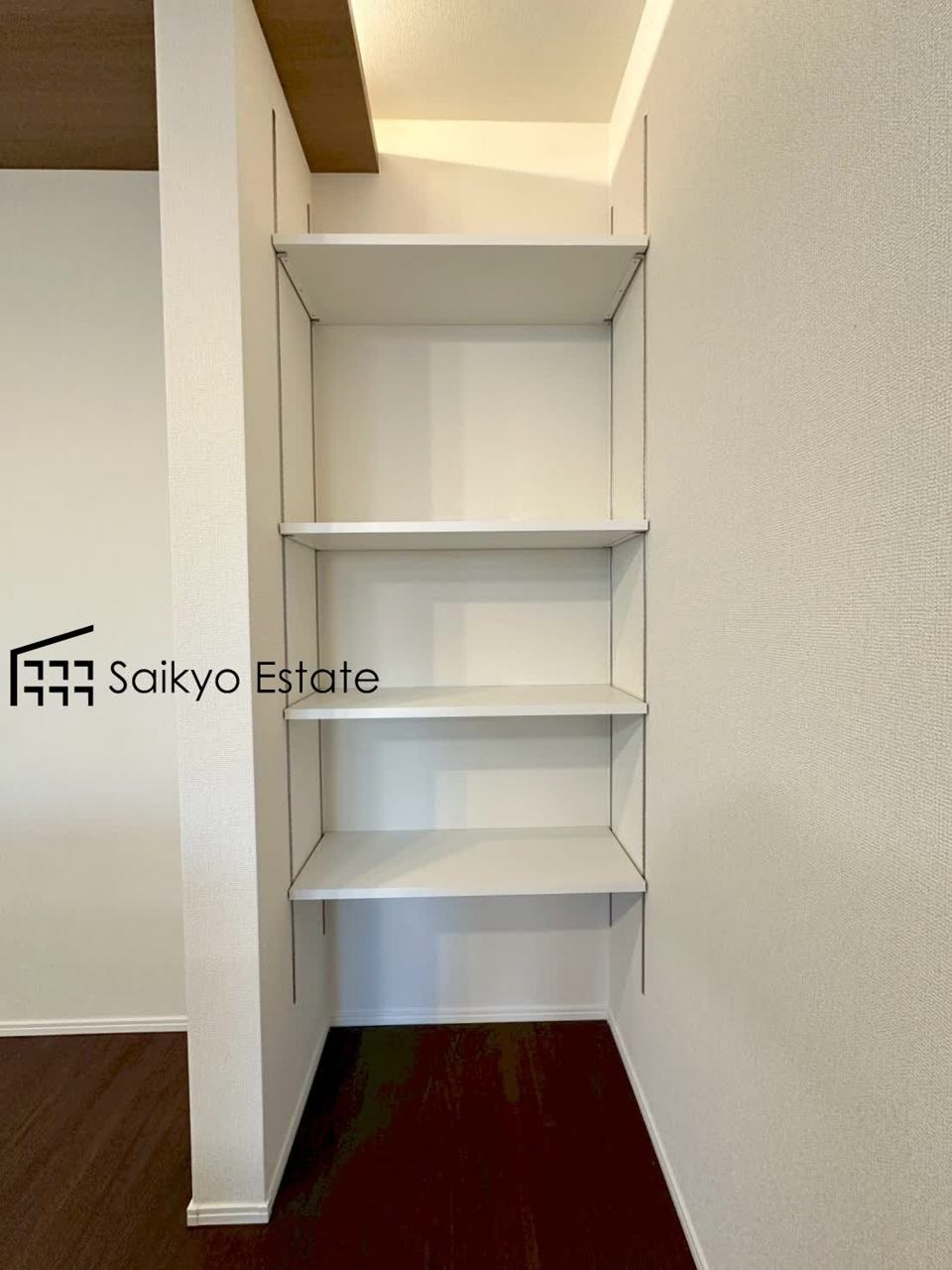 6.2帖の洋室にはクローゼットの他、可動棚による収納スペースもございます。お好みの物を飾ったり、用途様々です。