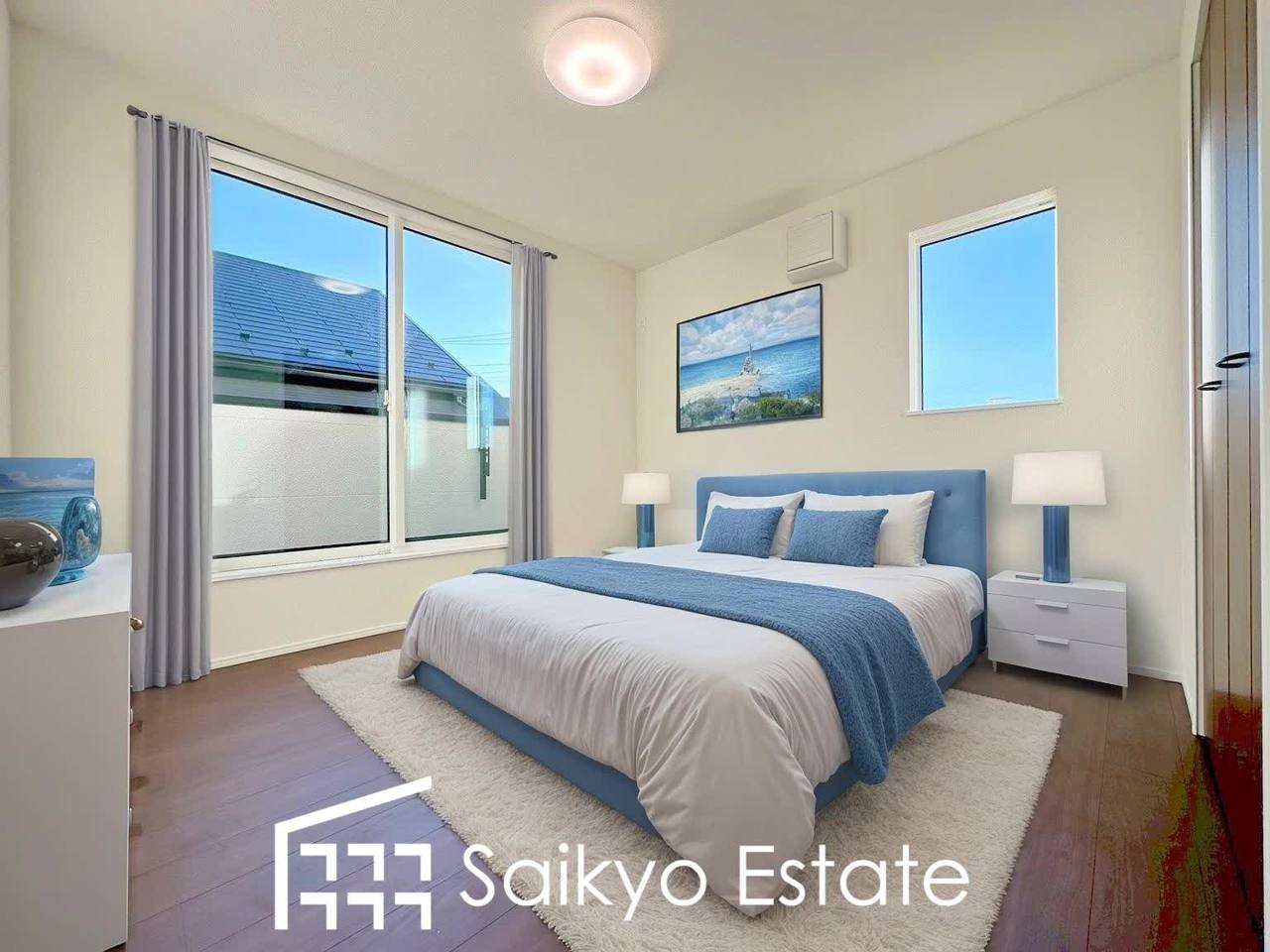 バルコニーに出入りの出来る洋室は、たくさん陽光が差し込む明るい空間です。朝も気持ちよく起きられそうです♪※家具類はCG加工しています。