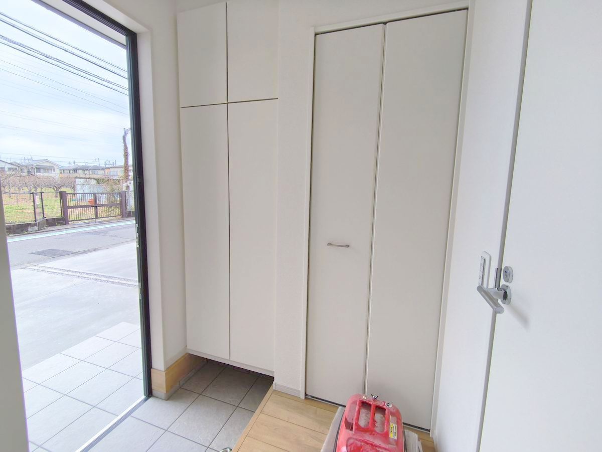 玄関は清潔感のある空間にしたいもの。ご家族が多いご家庭にはとても便利なたっぷり収納できるシューズボックス付きです。 ■府中市朝日町1丁目 新築戸建て■