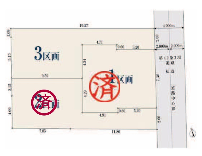 | 接道 | 東側4M私道に2.6M接道 | 小学校区 | 杉並区立沓掛小学校(450m) |