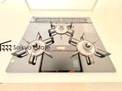 【施工例】「3口ガスコンロシステム」はたくさんの料理が同時に作れて便利な上、凹凸が少ないフラットトップなのでお掃除も楽々です。