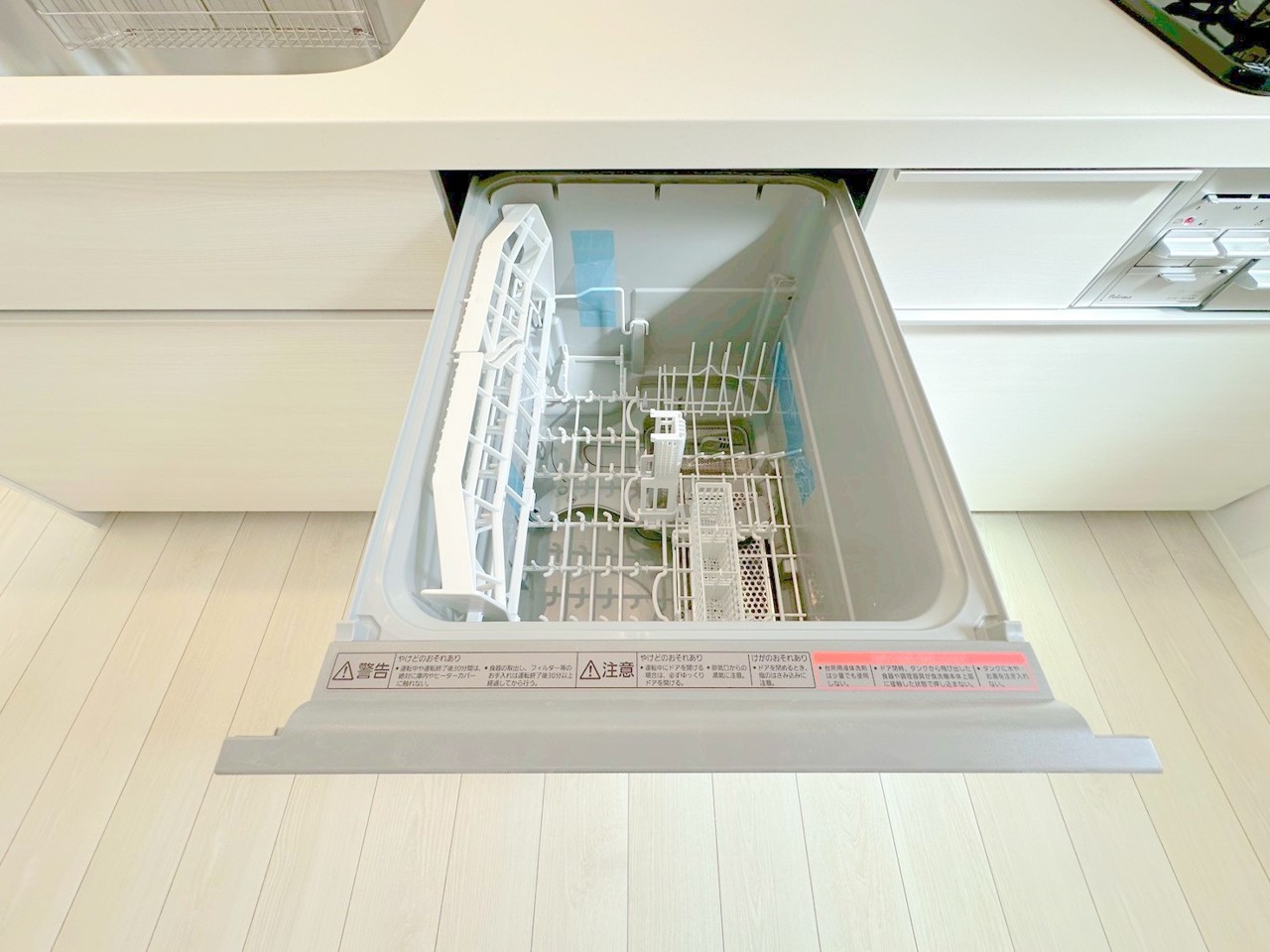 リビングにいる家族とコミュニケーションをとりながら作業が出来る人気のカウンターキッチン。お子様がリビングにいても目が届くので安心です。