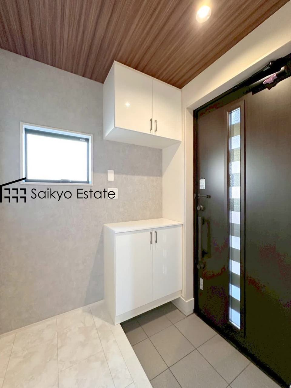 玄関には収納力に優れたシューズボックスがございますので、ご家族みんなの靴が十分入ります!小窓があって明るく換気ができるのも嬉しいですね。