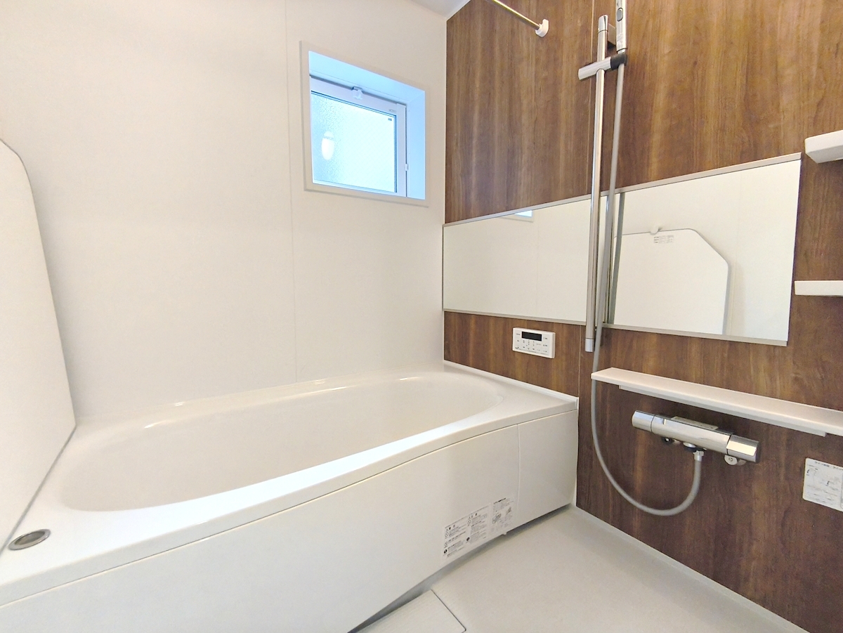 一日の疲れを癒すための心地よいバスタイムを演出する浴室はゆとりあるサイズを採用。浴室乾燥機付き! ■府中市小柳町5丁目 新築戸建て■