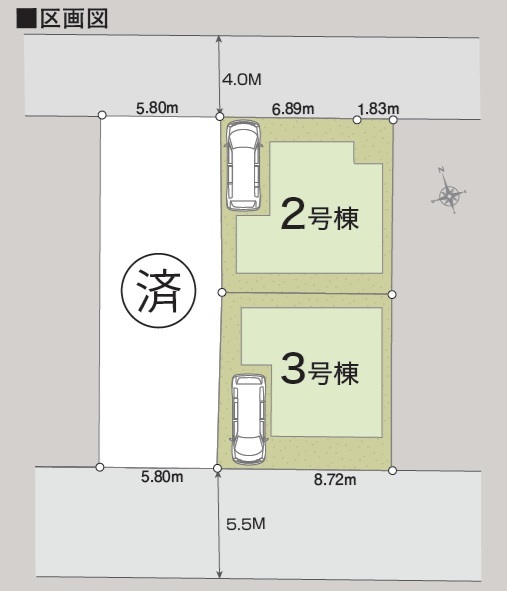 | 権利種類 | 所有権 | 接道 | 北側4M公道に接道 南側5.5M公道に接道 |