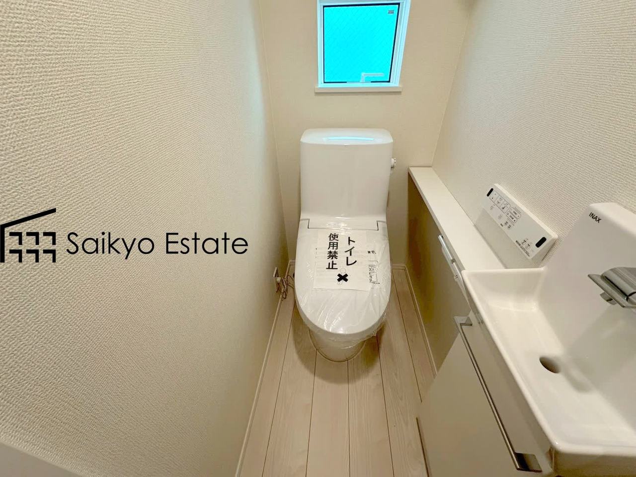 【施工例】トイレはお掃除が簡単なタイプを採用!ウォッシュレット付きで快適です♪窓がございますので、空気の入れ替えが出来るのも好ポイントですね!