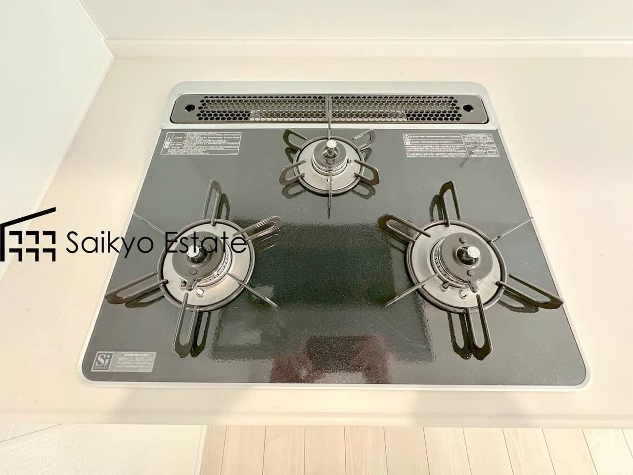 【施工例】「3口ガスコンロシステム」はたくさんの料理が同時に作れて便利な上、凹凸が少ないフラットトップなのでお掃除も楽々です。